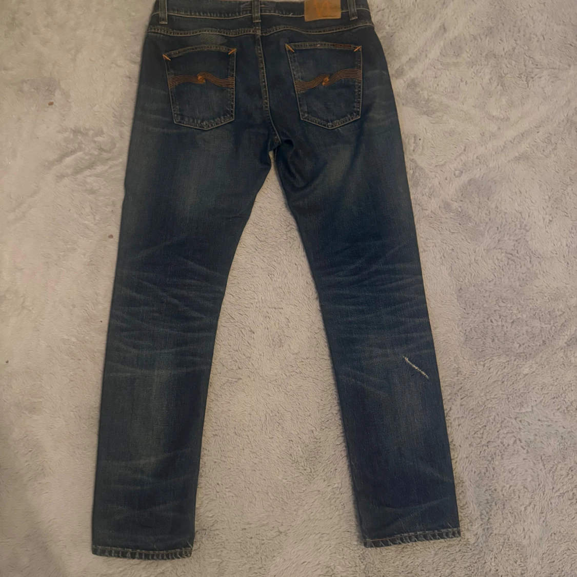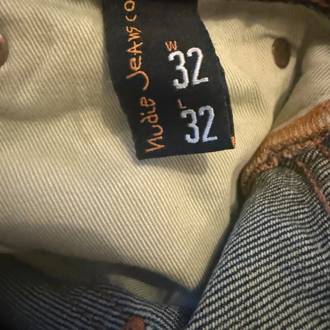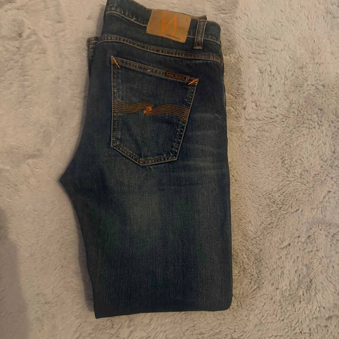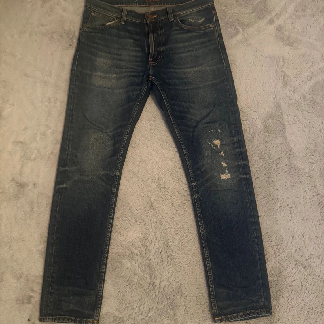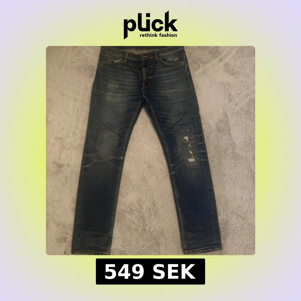 Snygga Nudie jeans med feta slitningar. Jeansen är sparsamt använda och utan tecken på användning. Modellen är Lean Dean.