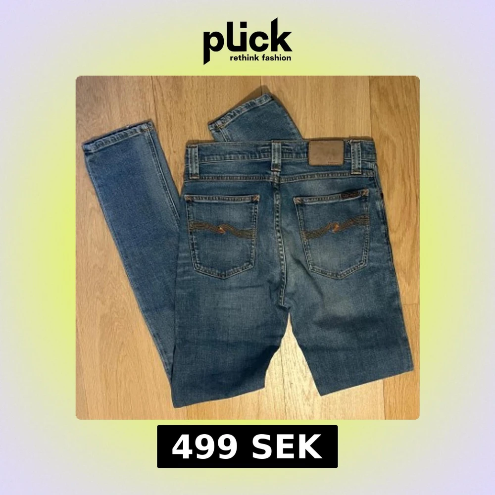 Säljer ett par Nudie Jeans High Kai i ljusblå tvätt med klassiska orange sömmar och snygga detaljer på bakfickorna. Jeansen är tillverkade i 98% bomull och 2% elastan för en bekväm stretchig känsla. Modellen har smal passform och normal midja. Inga som helst defekter tveka inte att fråga!
