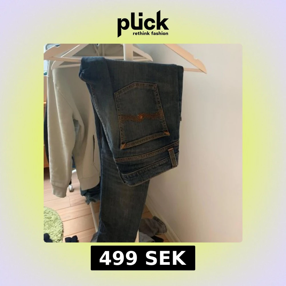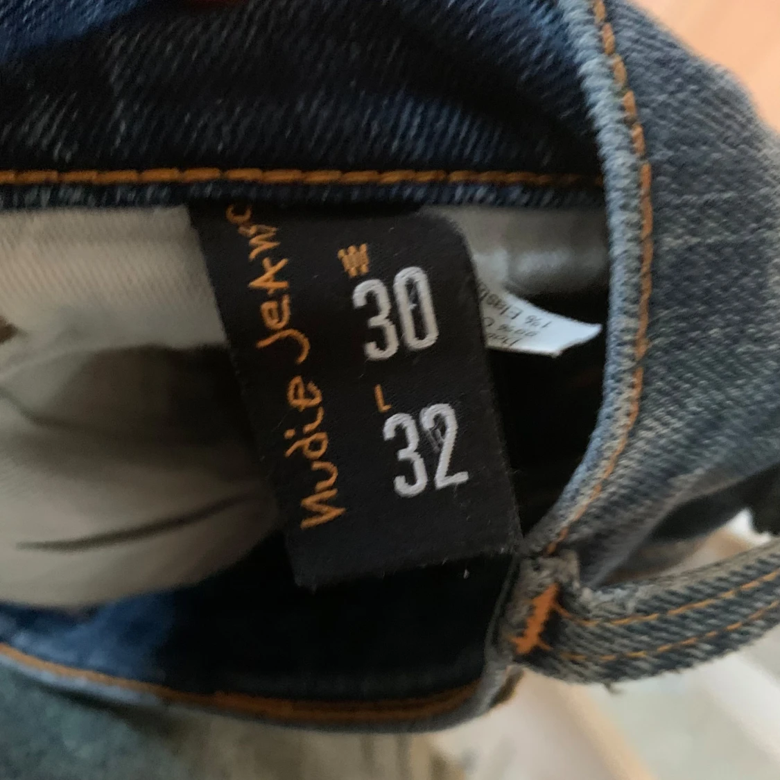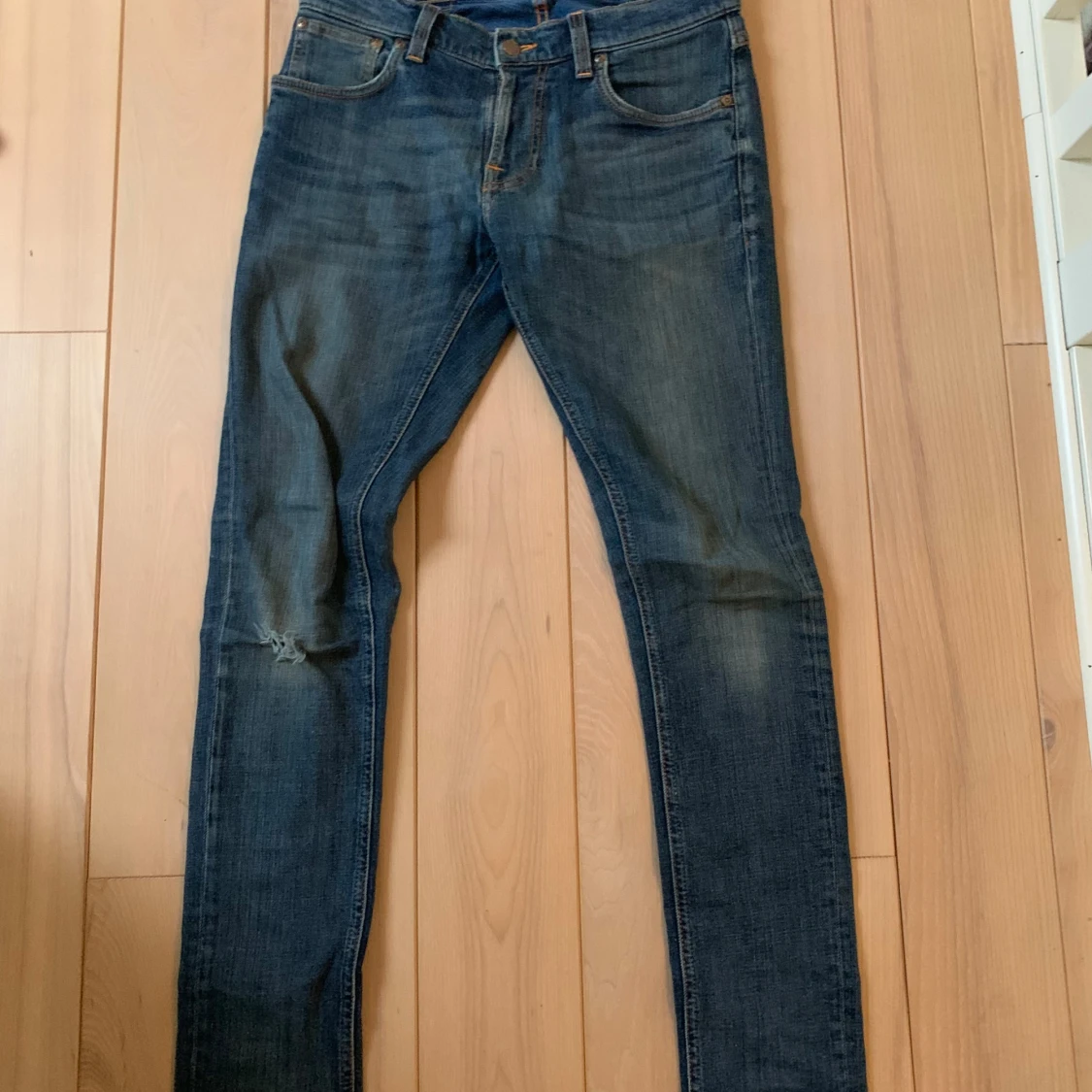 Ett par feta nudie jeans me slitning vid knäet. Storleken är 30 i midja och 32 i längd. Finns inga defekter eller liknande. Skick 9-10. Nypris runt 1500 mitt pris 349