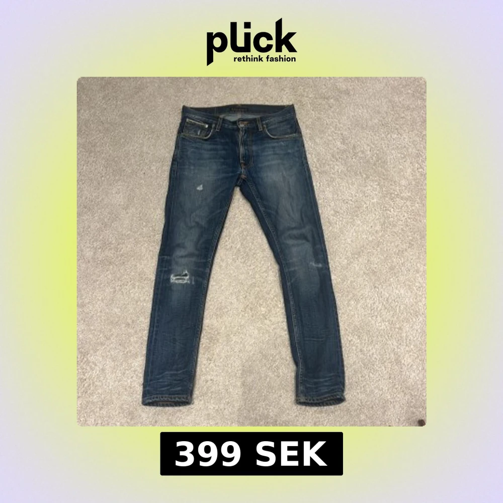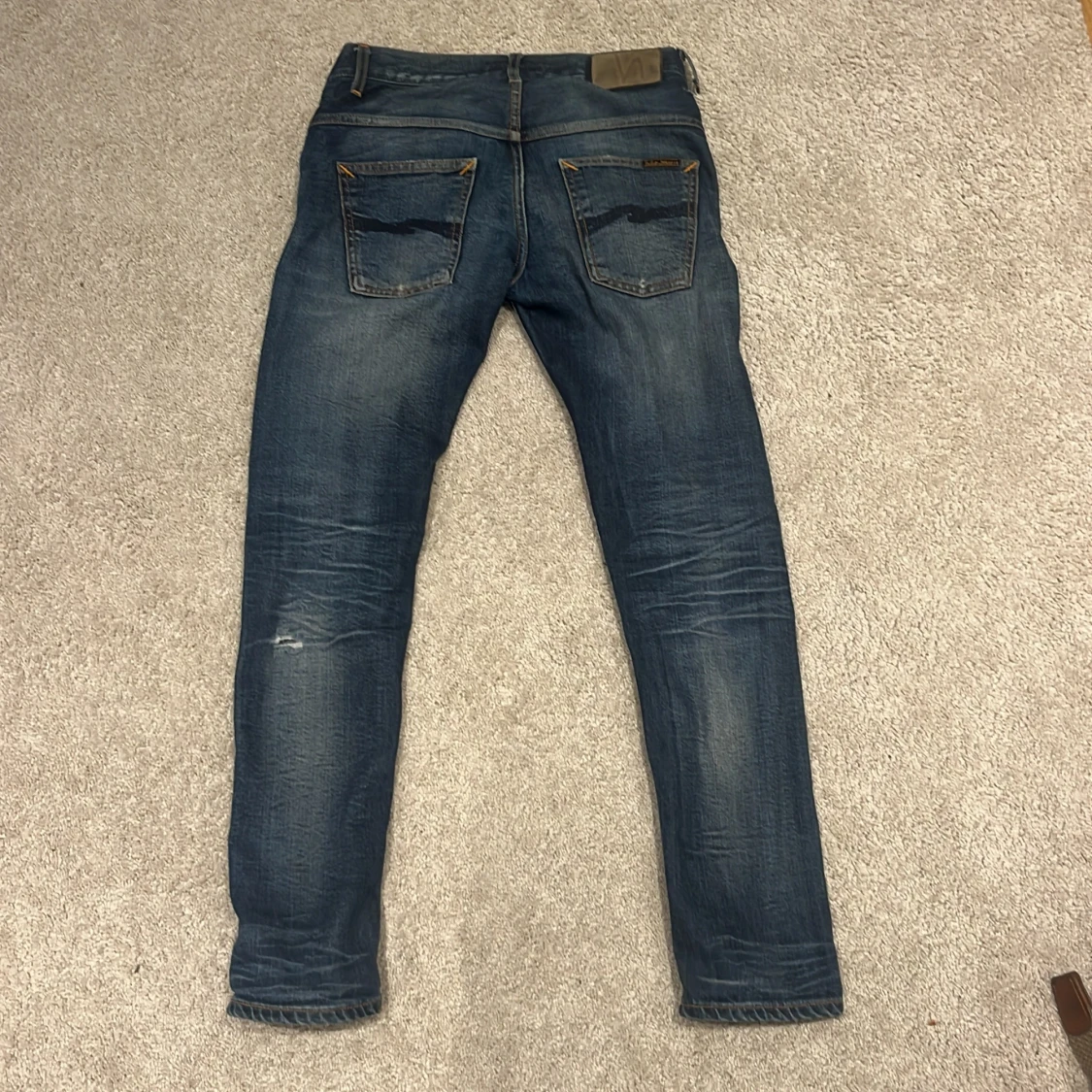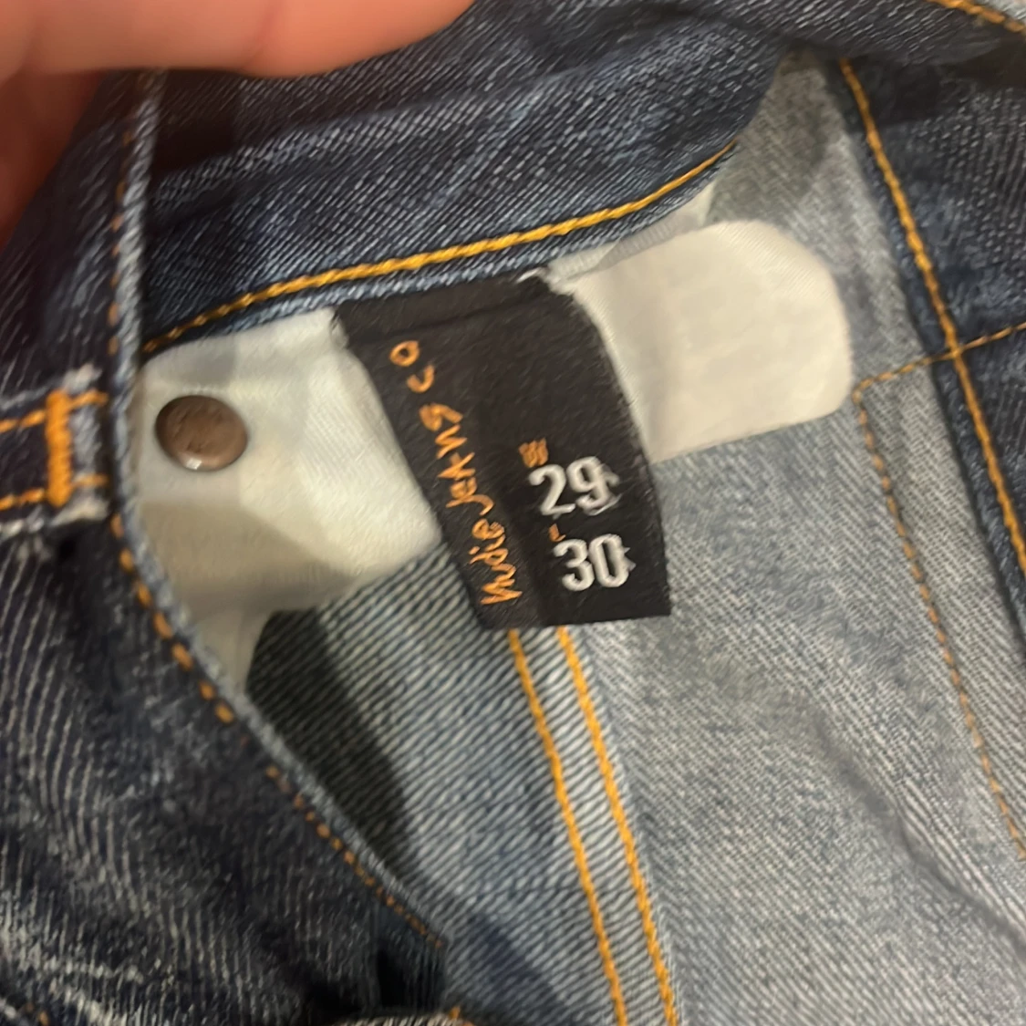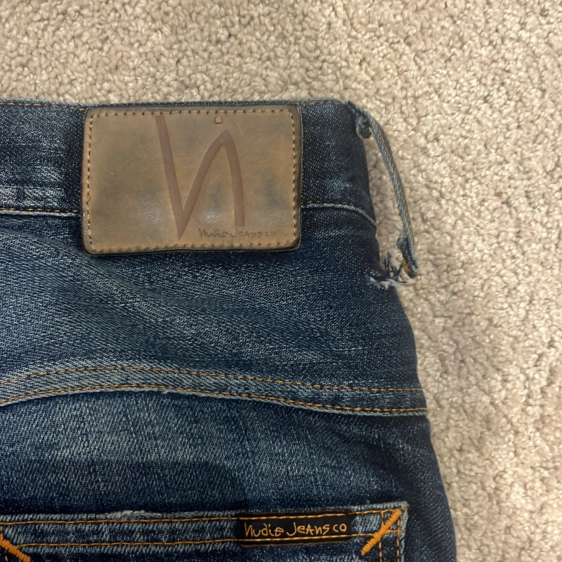 Snygga Nudie jeans i bra skick storlek 29/30 jeansen är i bra skick förutom en liten skada (kolla sista bilden)