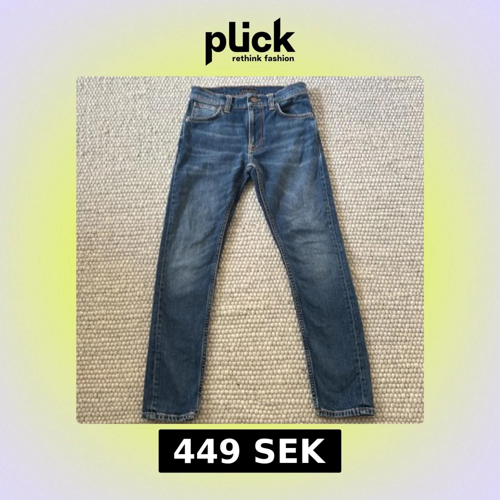 Säljer ett par Nudie Jeans Lean Dean i tvätten Troubled Sea. Klassiska blå jeans med orange sömmar, fem fickor och snygg broderad detalj på bakfickorna. Materialet är 99% bomull och 1% elastan för lite stretch. Perfekt passform med smalare ben.