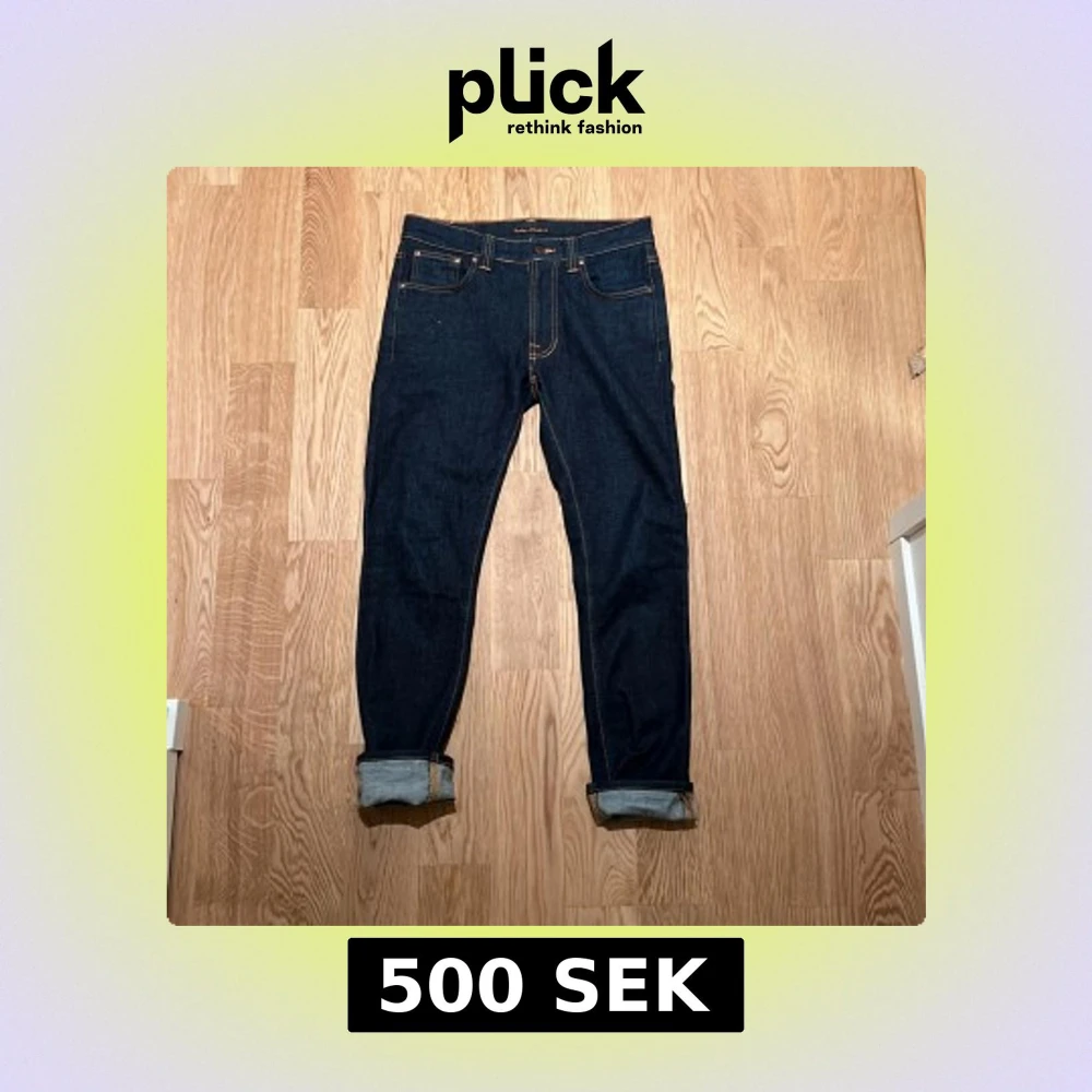Snygga Lean Dean jeans från Nudie Jeans i mörkblå tvätt. Modellen har slim passform, knappt använd och inga defekter.