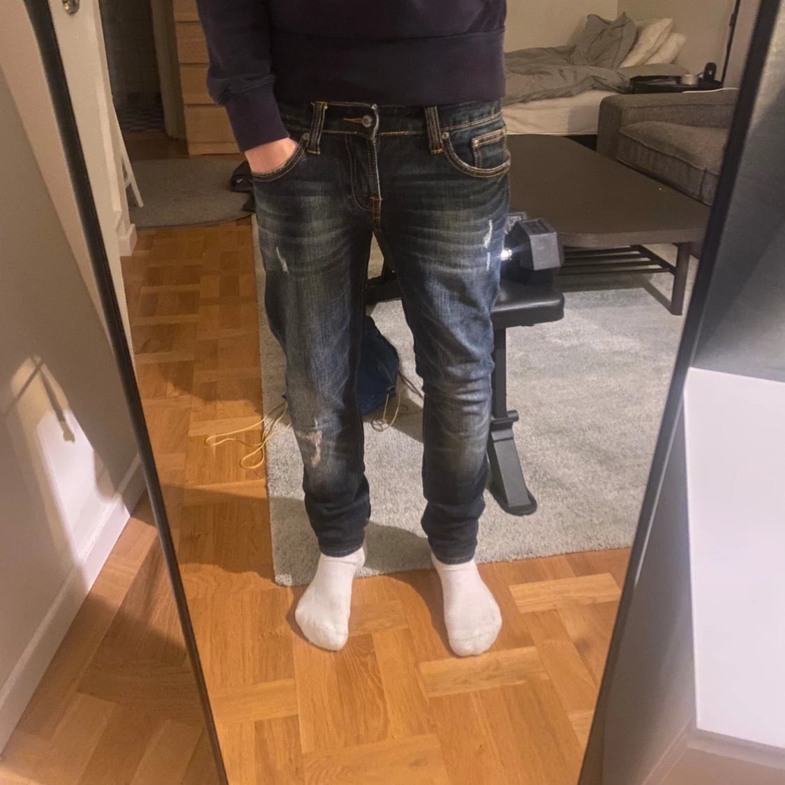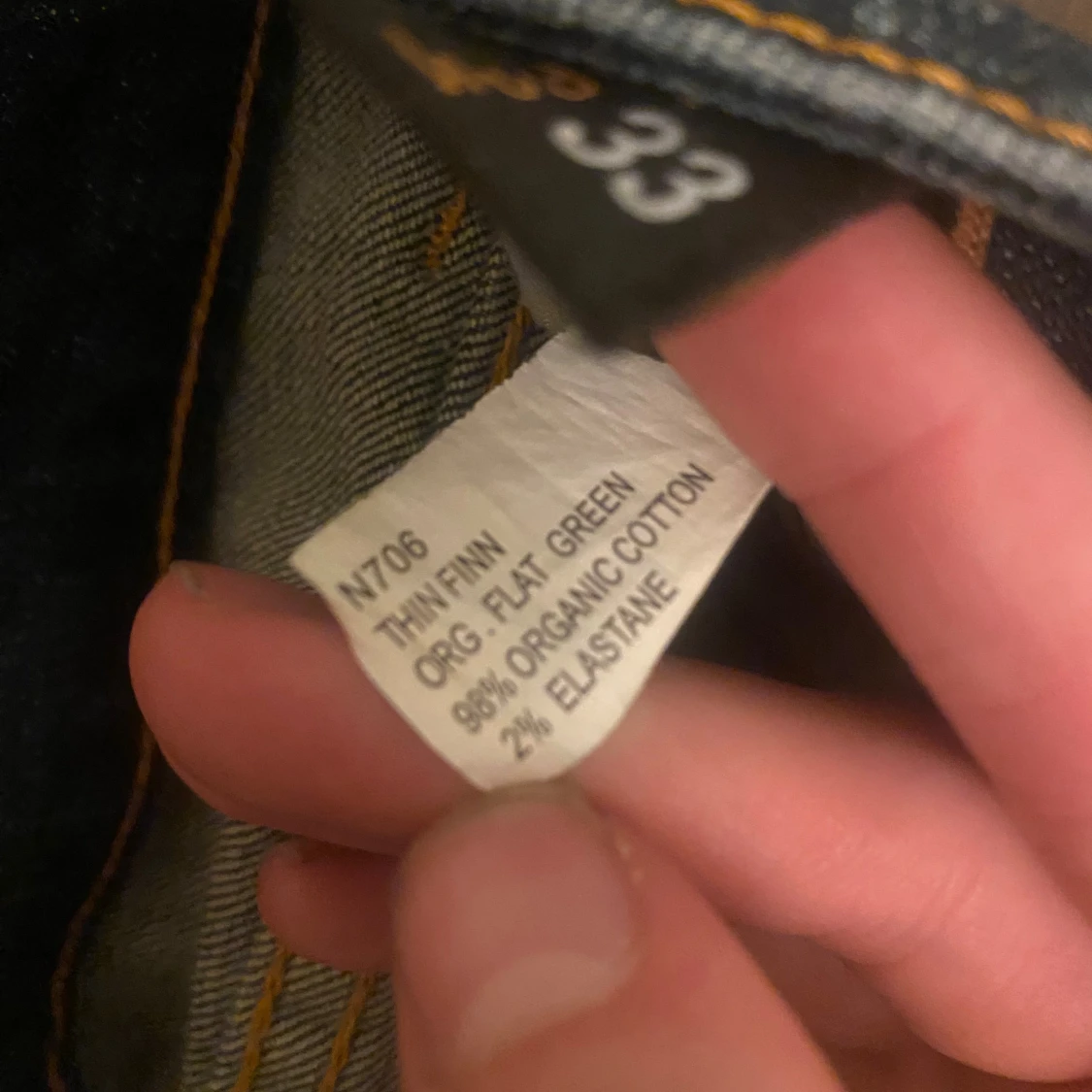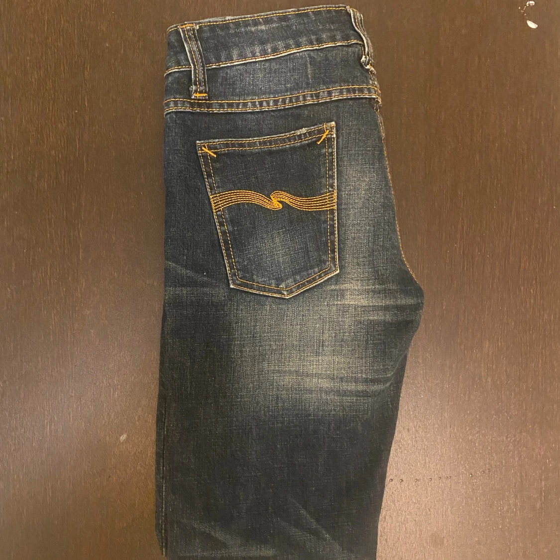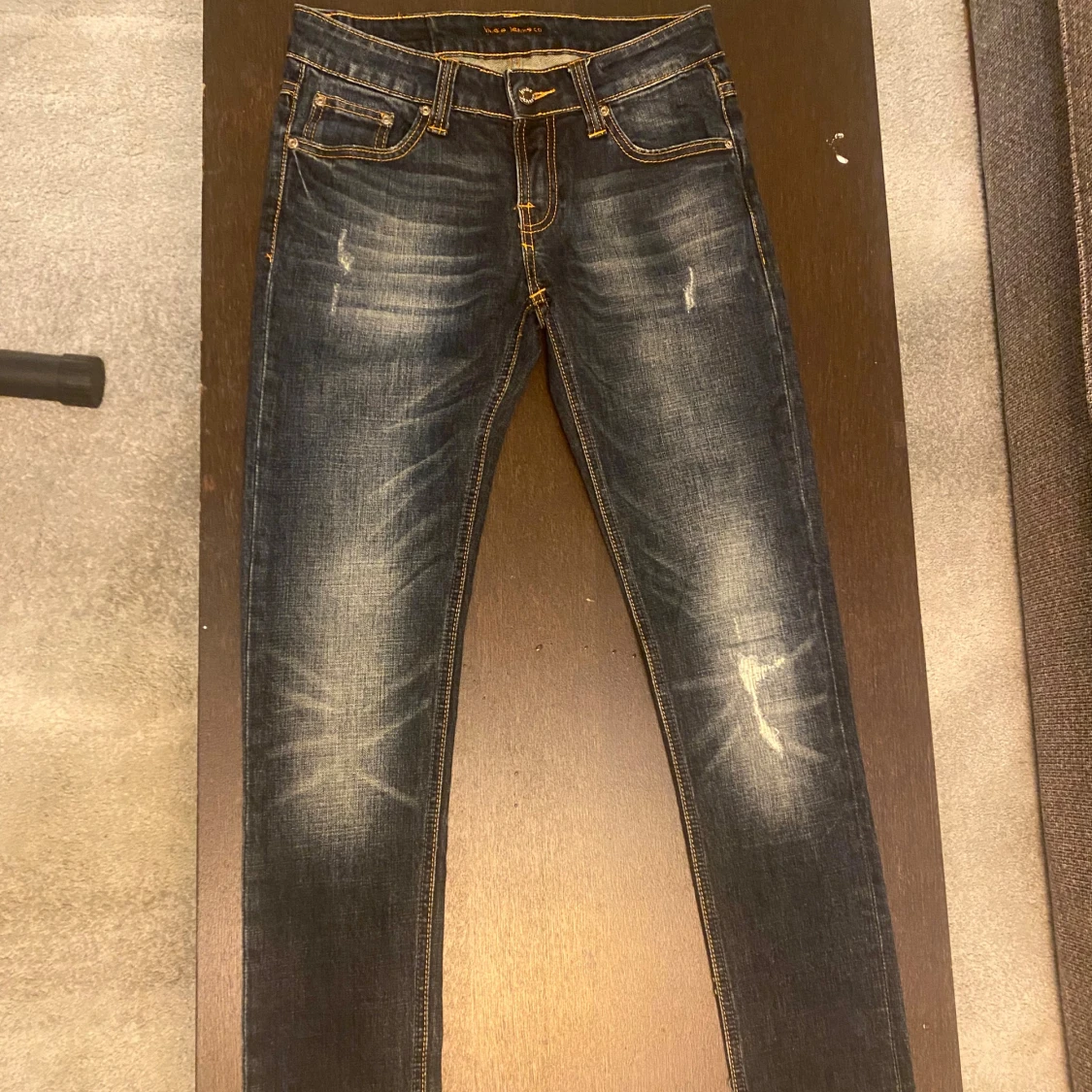 Ett par överföra nudie jeans med snygga designade slitningar. Modell thin finn storlek 28/33. Sitter slim/regular på mig som är 177/60kg. Jeansen har en skitsnygg tvätt och är i nyskick utan någon som helst defekt. Har du frågor om fler bilder mått osv? Fråga på!