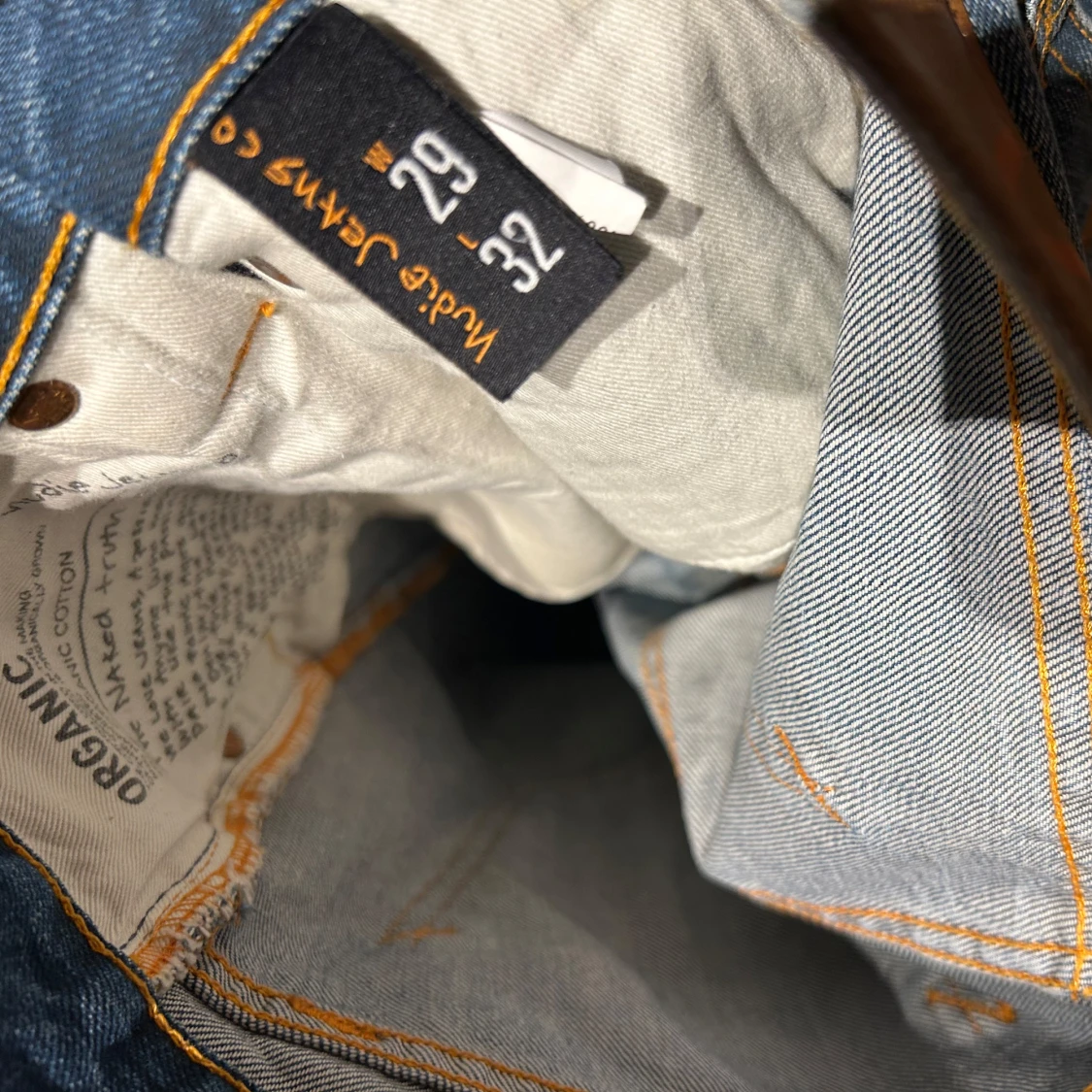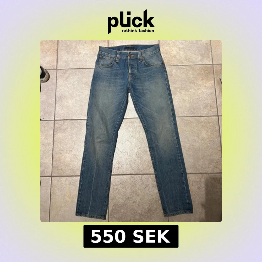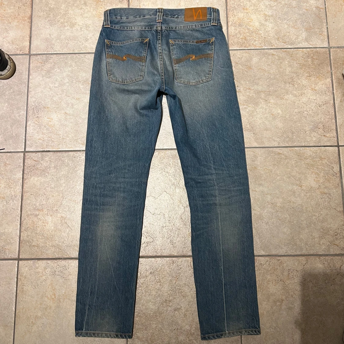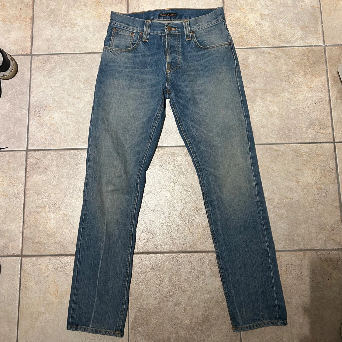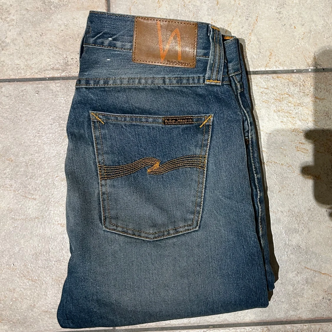 Säljer ett par blå jeans från Nudie. De har en slim/ något straight passform. Skicket är extremt bra, i stort sätt som nya. Mitt pris 550, skriv vid frågor eller funderingar!👍