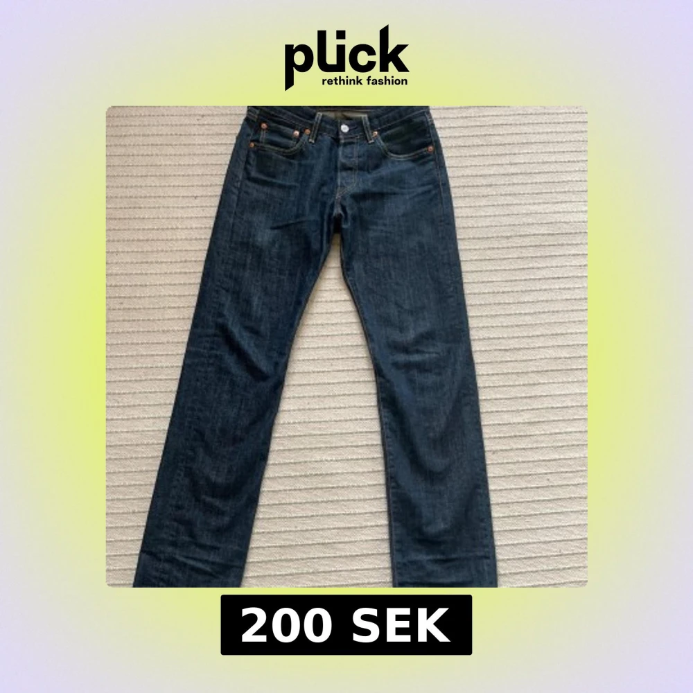 Säljer ett par klassiska Levis 501 jeans i mörkblå denim. De har en slim passform och är tillverkade i högkvalitativt jeanstyg. Jeansen är helt nya så skicket är 10/10. Skruv gärna om ni några frågel eller fler bilder.
