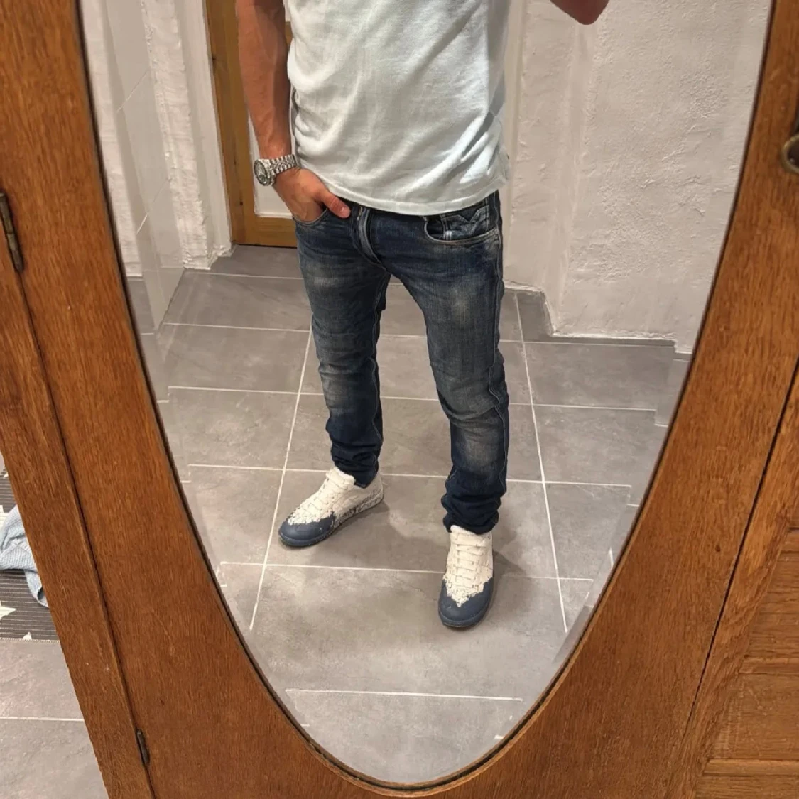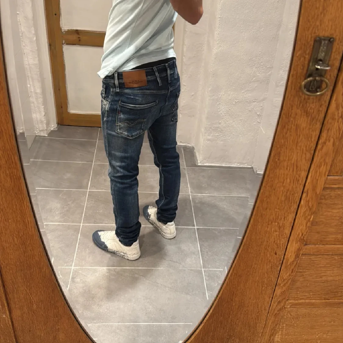 Säljer ett par feta jeans från Replay modell Anbass. Storlek W29 L32. Skick 10/10 använd max två gånger. Säljer på grund av att jeansen är lite för små för mig. Hör gärna av er om ni har några funderingar!