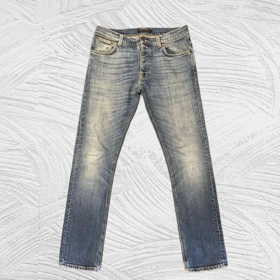 Nudie Jeans Dude Dan (W31 L32) Sällsynta vintagejeans från Nudie, i klassisk Dude Dan-passform – rak och tidlös modell med perfekt vintagetvätt. Autentisk denimkänsla med subtila slitningar och riktigt snygg blå ton 2000 tals kännsla!!! Jeansen är i mycket bra skick, inga hål eller fläckar.
