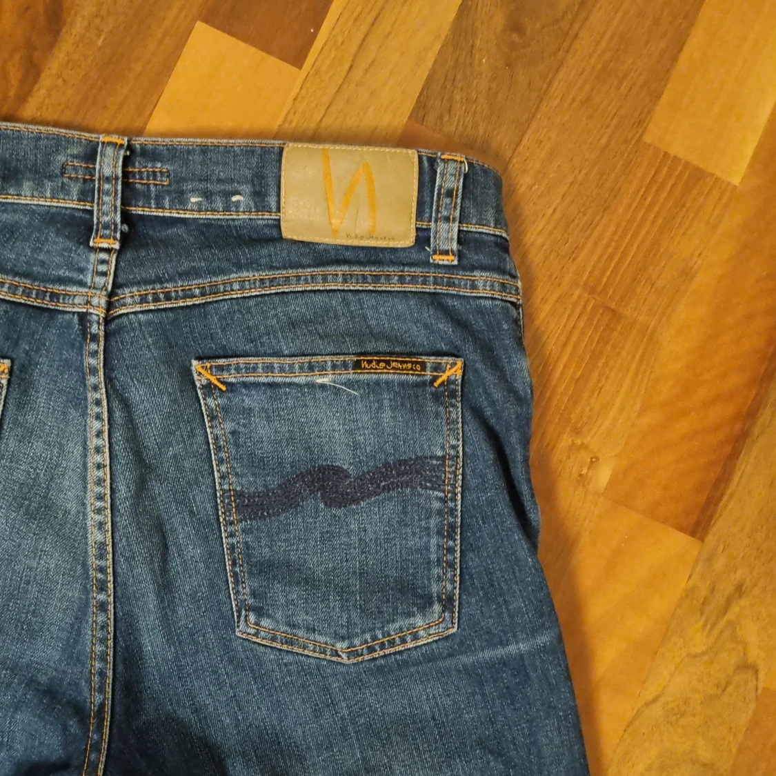 Ett par Nudie jeans av modellen lean dean. Storleken är W30 L32 men byxorna är uppsydda så jag skulle säga att längden är 30 eller 31. Använda fåtal gånger, skick 4.9/5. Nypris ca 1600.