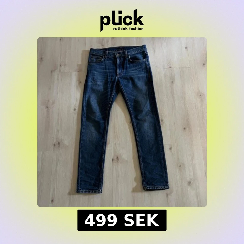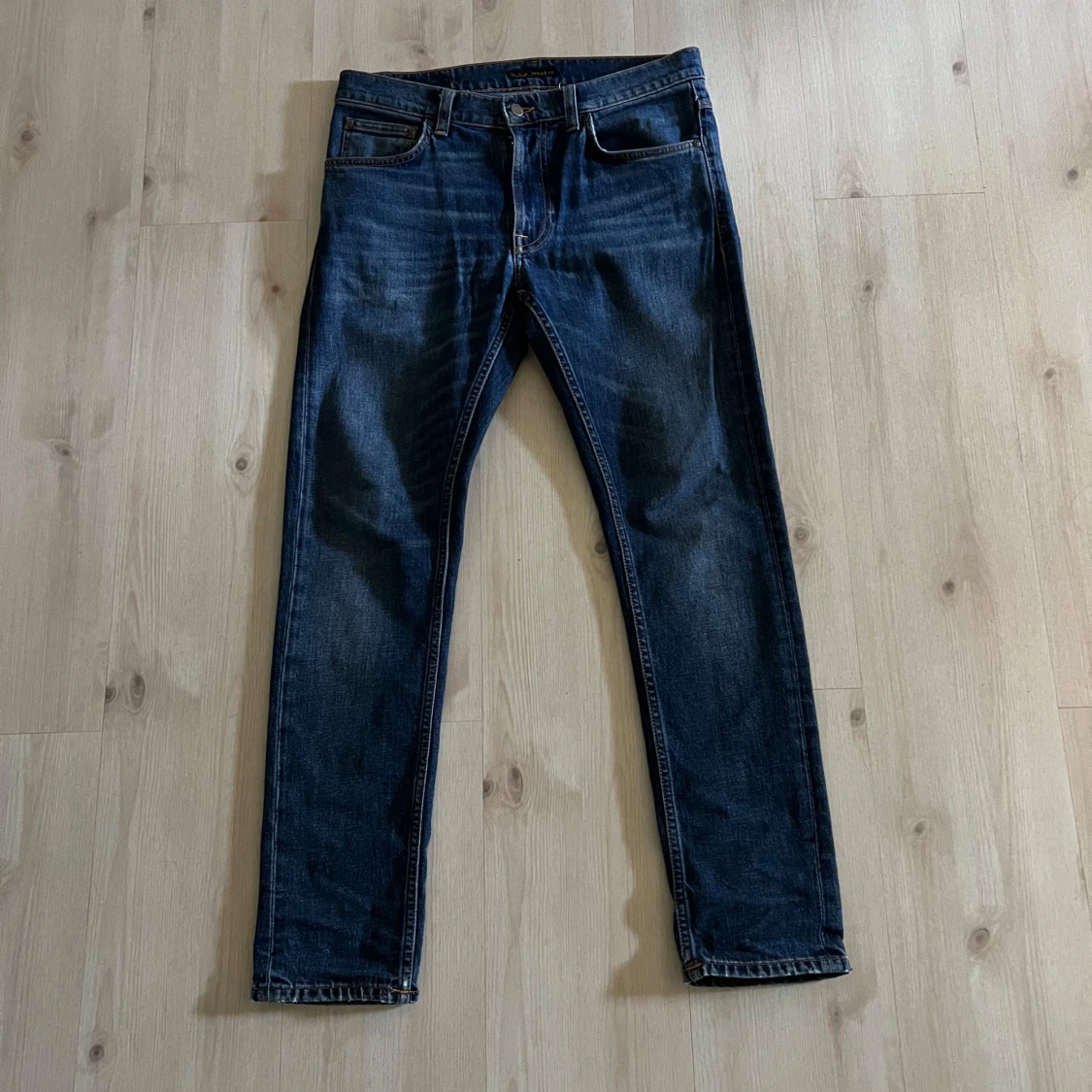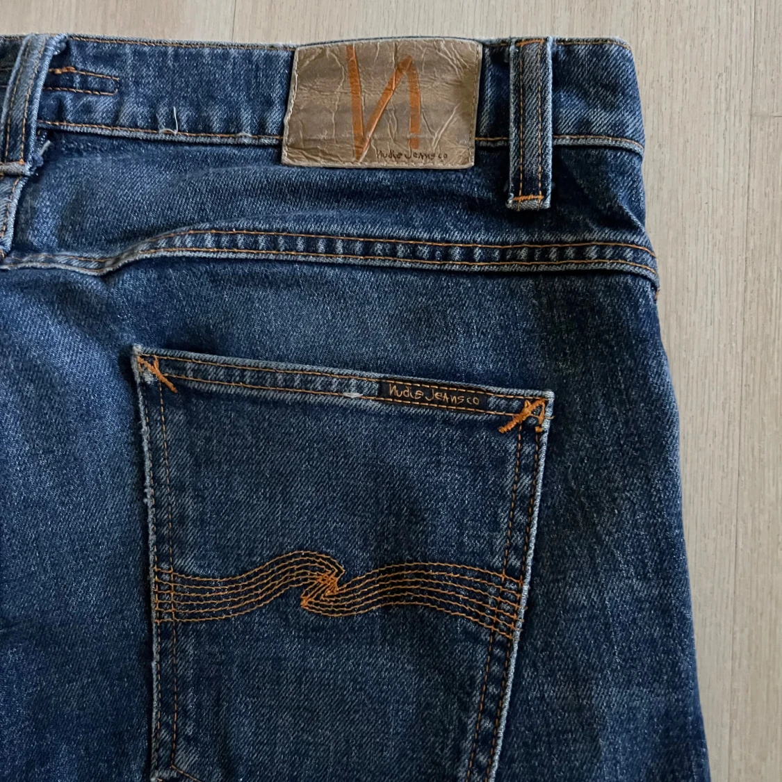 Mörkblåa Nudie Jeans. Modell: Lean Dean slim passform. Storlek: W32 L30.