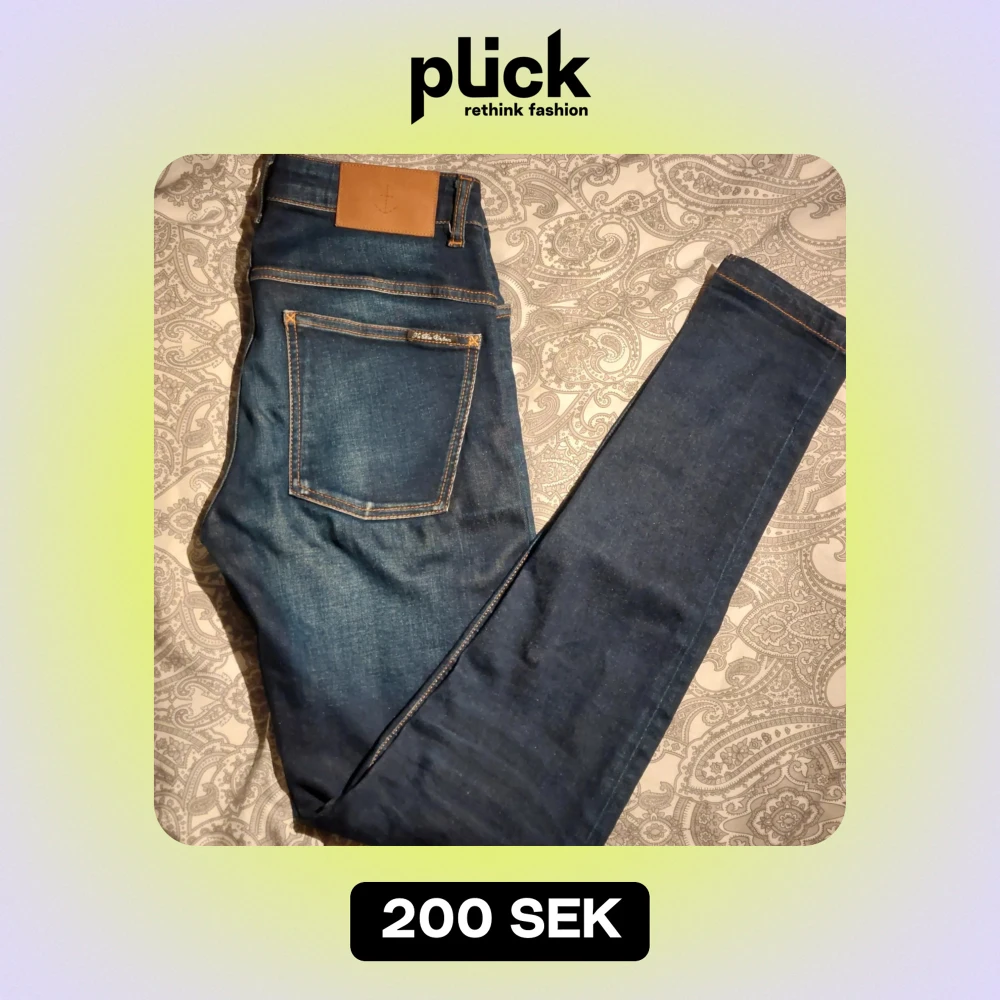 Mörkblåa snyggt solblekta jeans från The Blue Uniform. Nypris 1400kr. Har inga defekter. Jeansen är slim fit och är storlek w32/l34.