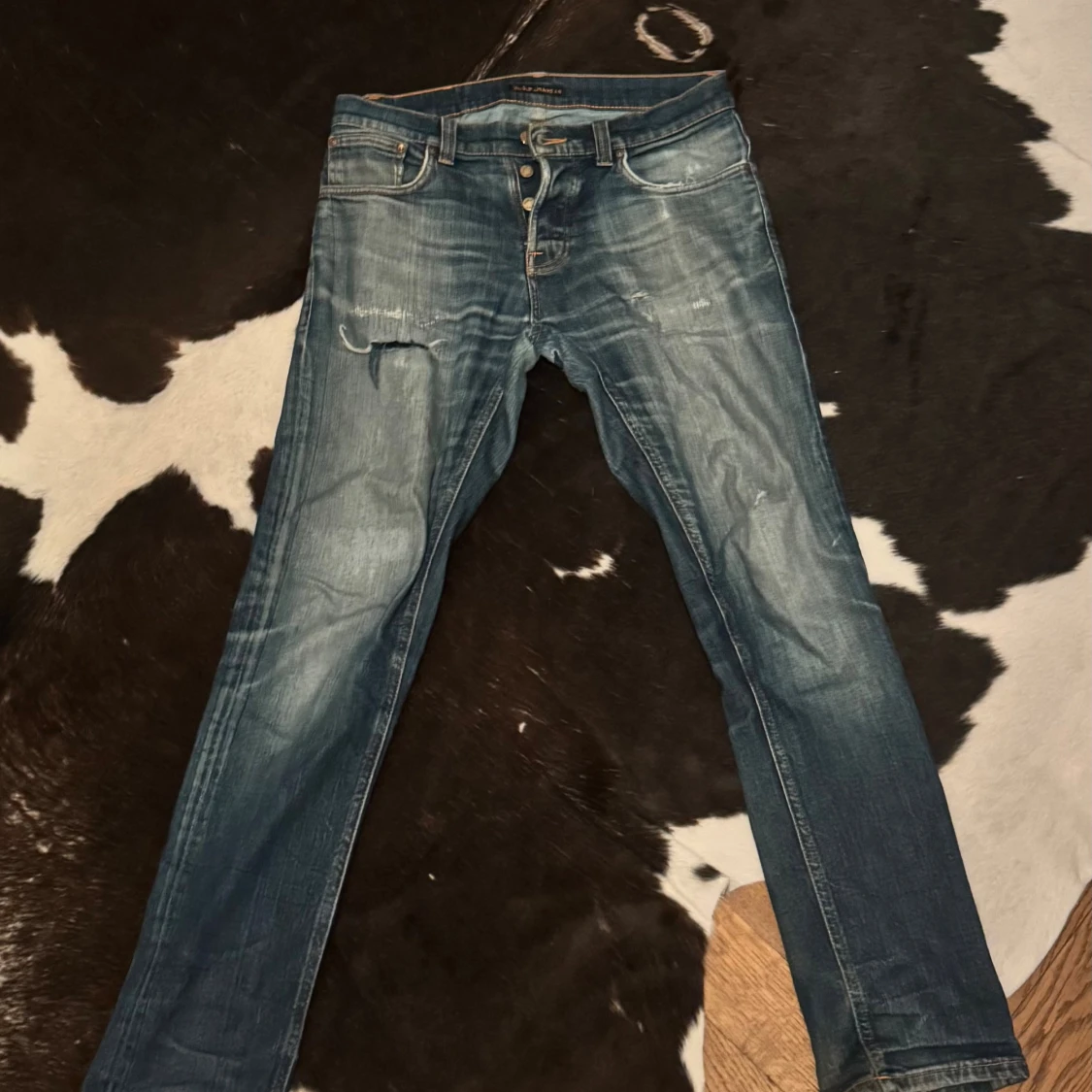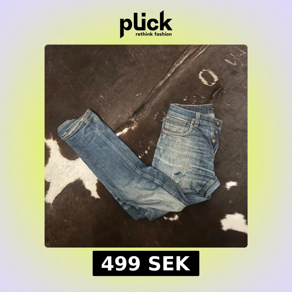 Ett par riktgit feta nudie jeans i en unik colorway med snygga slitningarđ„đ„Modellen Ă€r grim tim. W30 L31