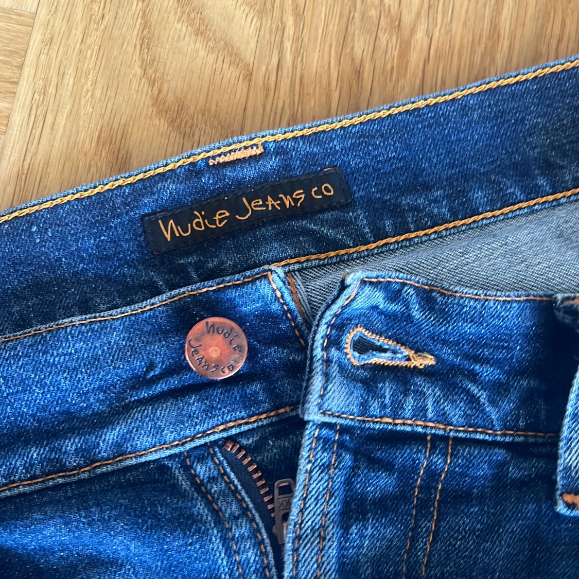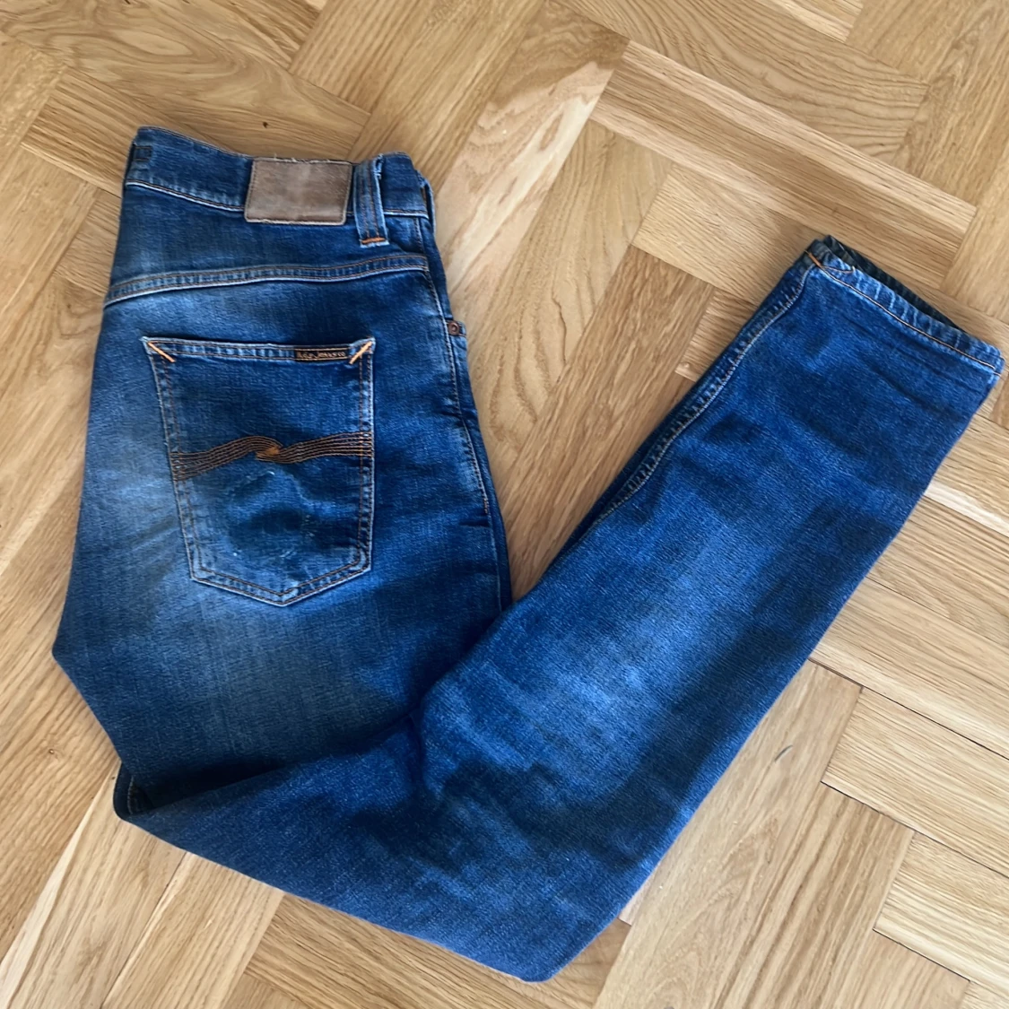 Säljer nu dessa riktigt feta Nudie jeans🤩. Skick 8/10 inga hål eller skador men tecken på andvändnig, Strlk w29 L32