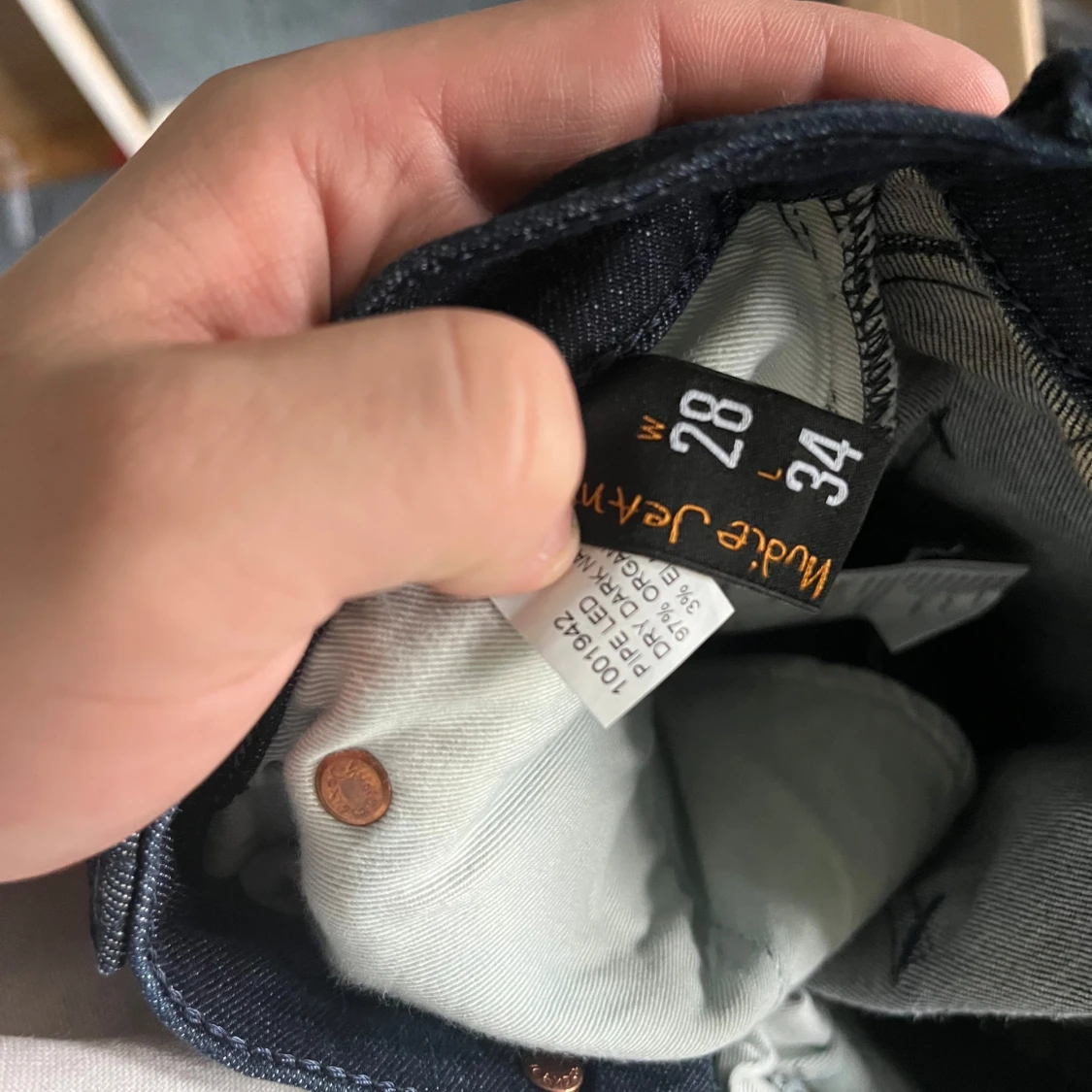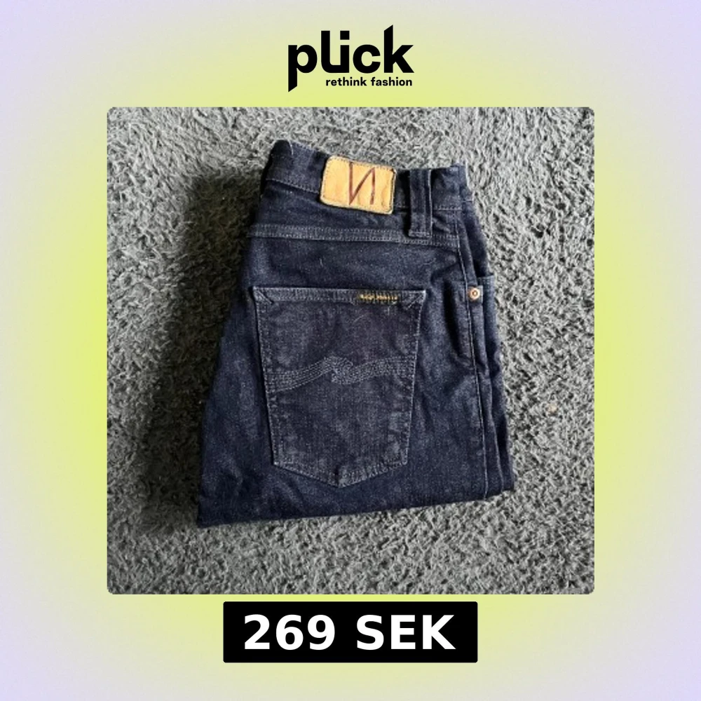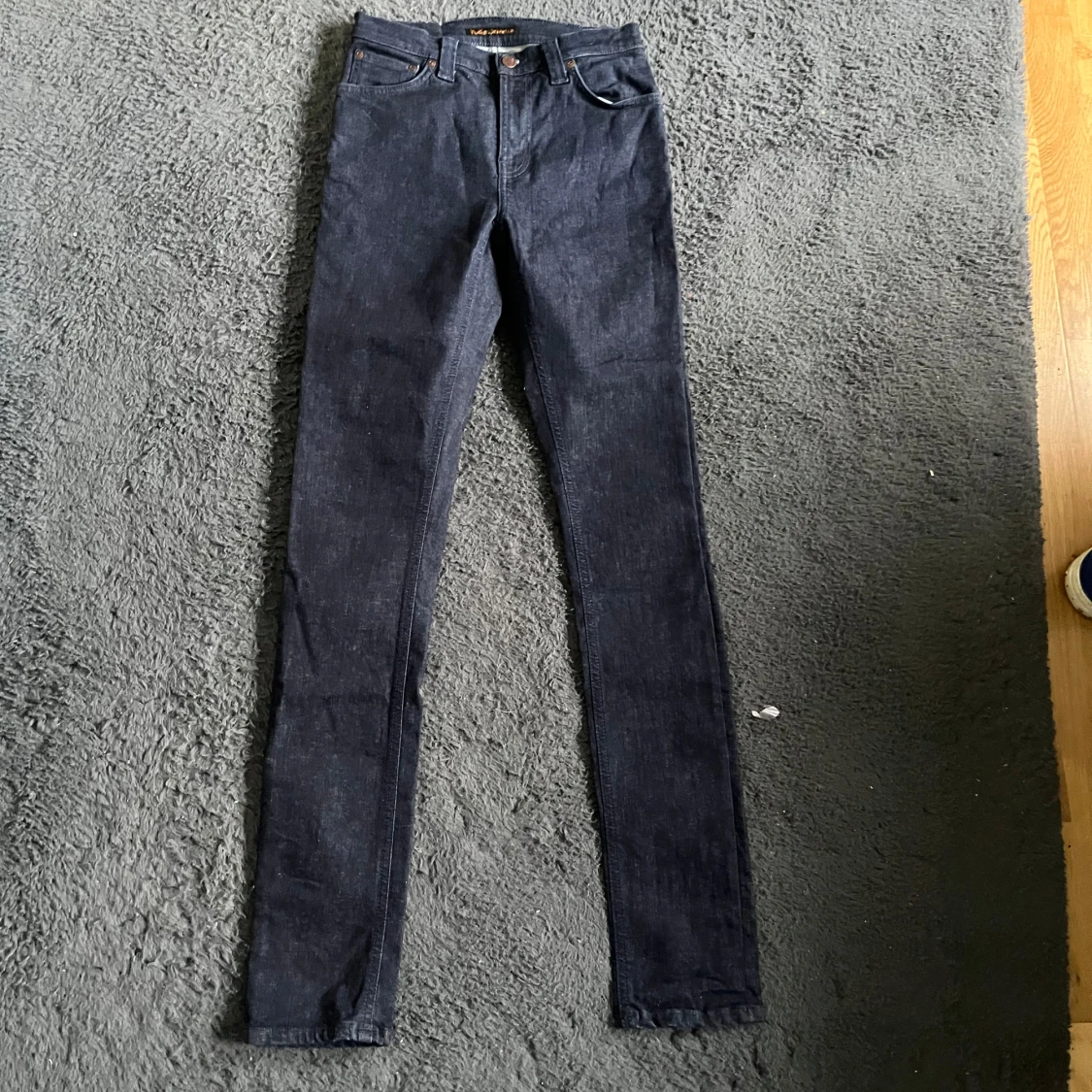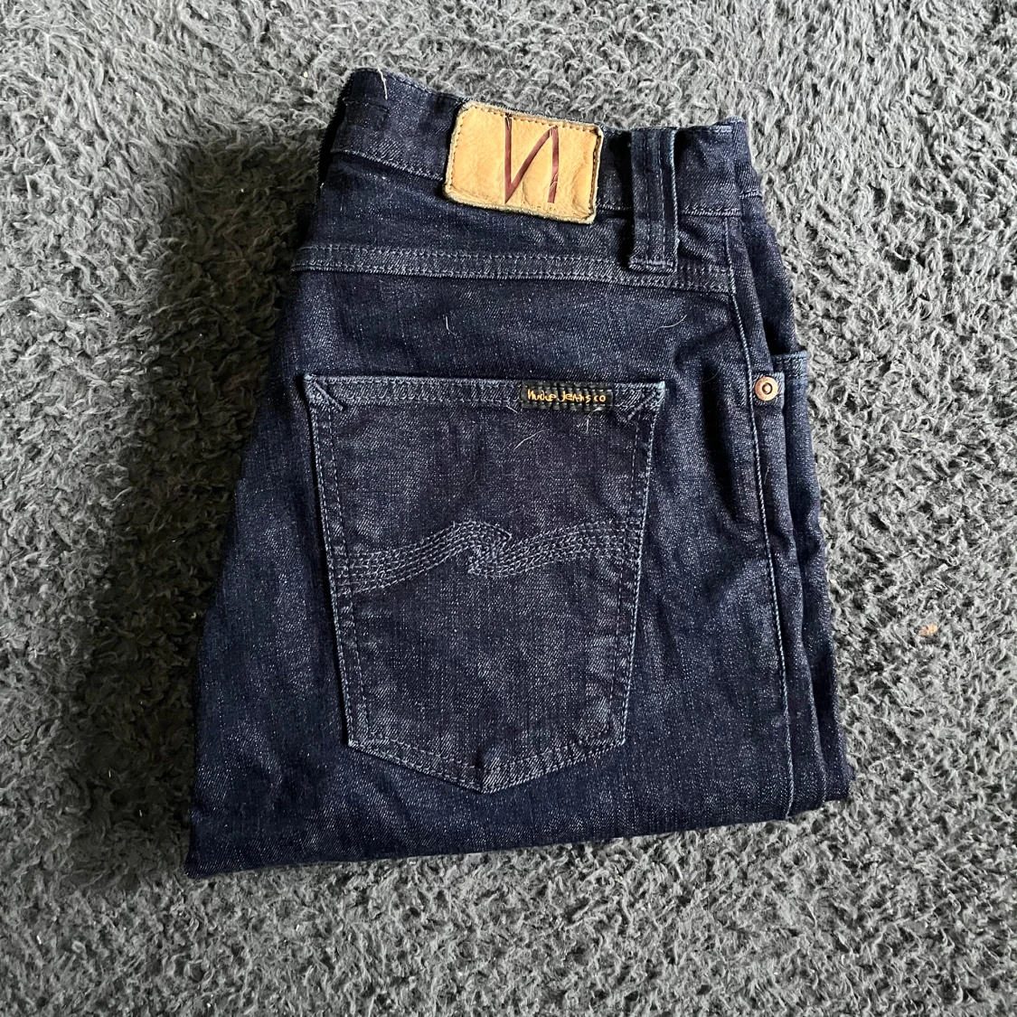 Snygga mörkblå skinny jeans från Nudie med klassisk femficksdesign och läderpatch bak i midjan. Jeansen är i stretchigt denim och har en smal passform som sitter tight längs benen. Perfekta för dig som gillar en stilren och enkel look. Längd 112cm. Ifall det inte finns någon bild i annonsen där jag bär plaggen jag säljer så är det för att jag ej kan ha storleken heller passformen, så kolla måtten för storlek och googla på modellnamnet för passform 😉
