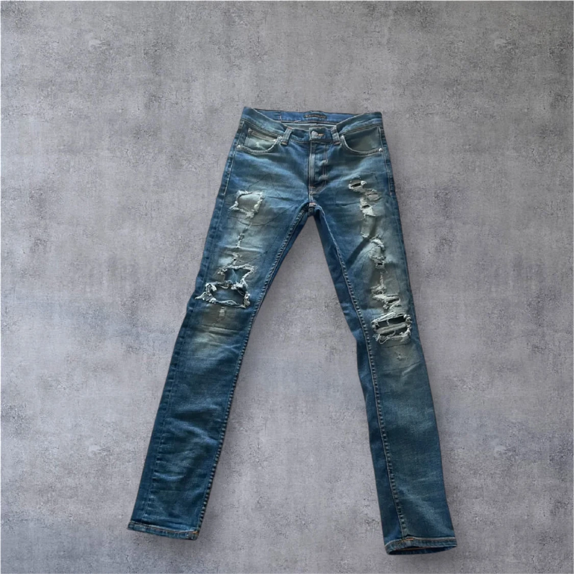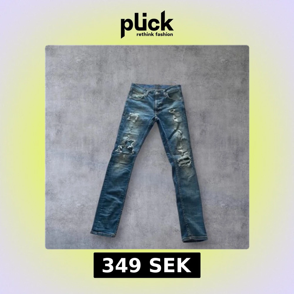 Ett par snygga nudie jeans med fina slitningar i modell lean dean,de finns även ett par synliga hål men de kan du få ihop av nudie gratis. Nypris 1500
