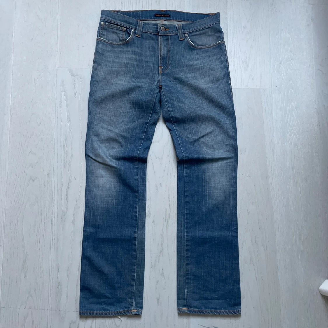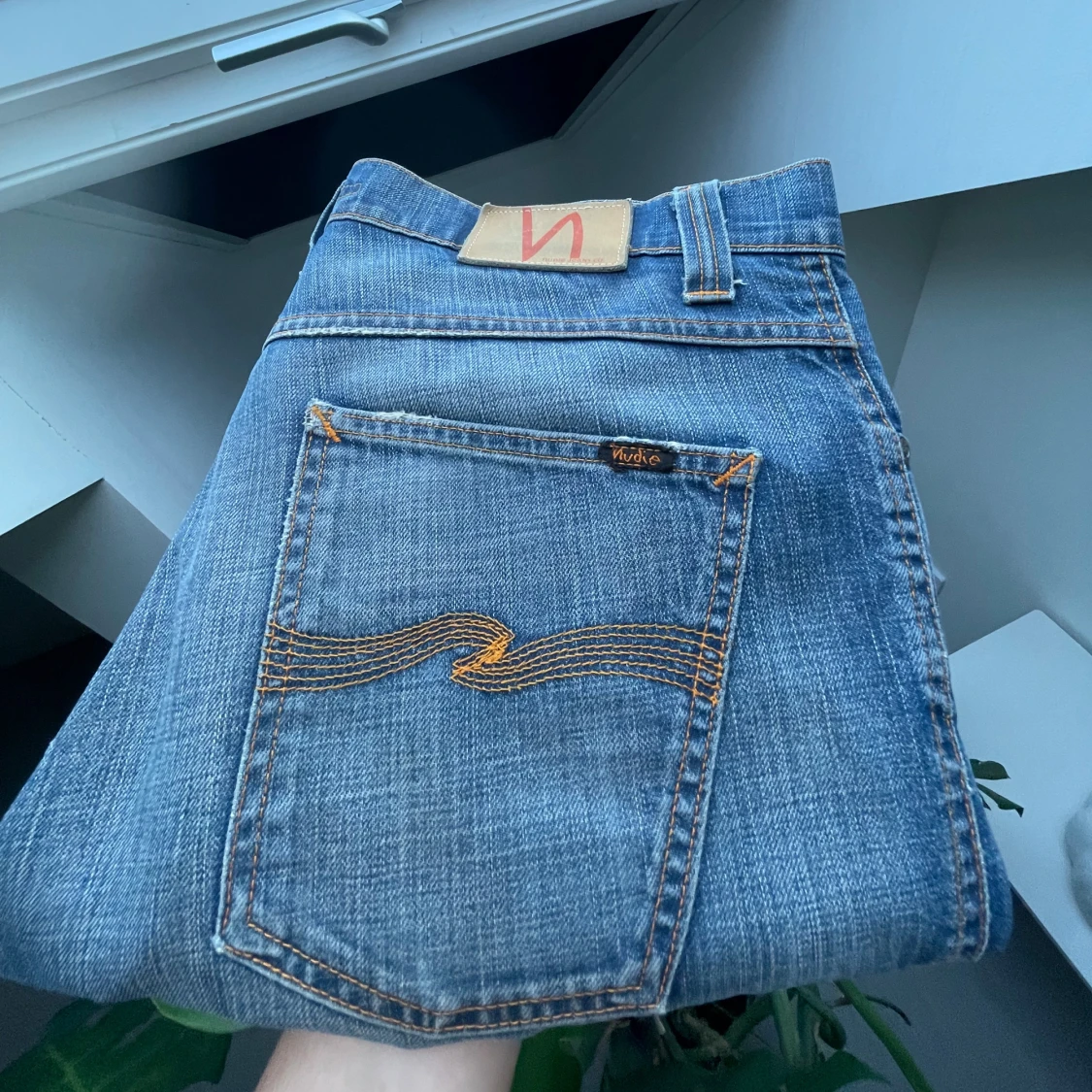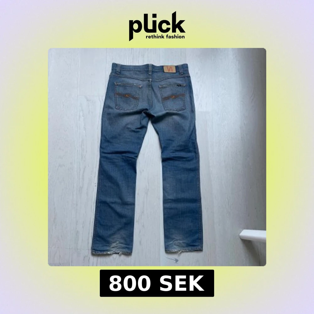 Säljer ett par nudie jeans i model LowSlimJim. Storlek 34/34. Jeansen har en vintage look skulle säga.💫