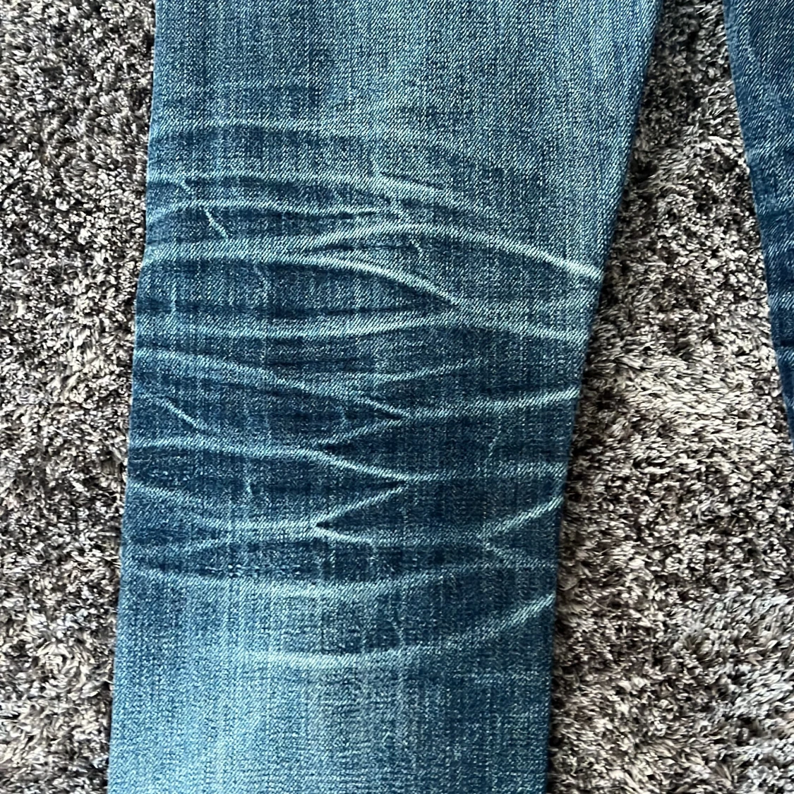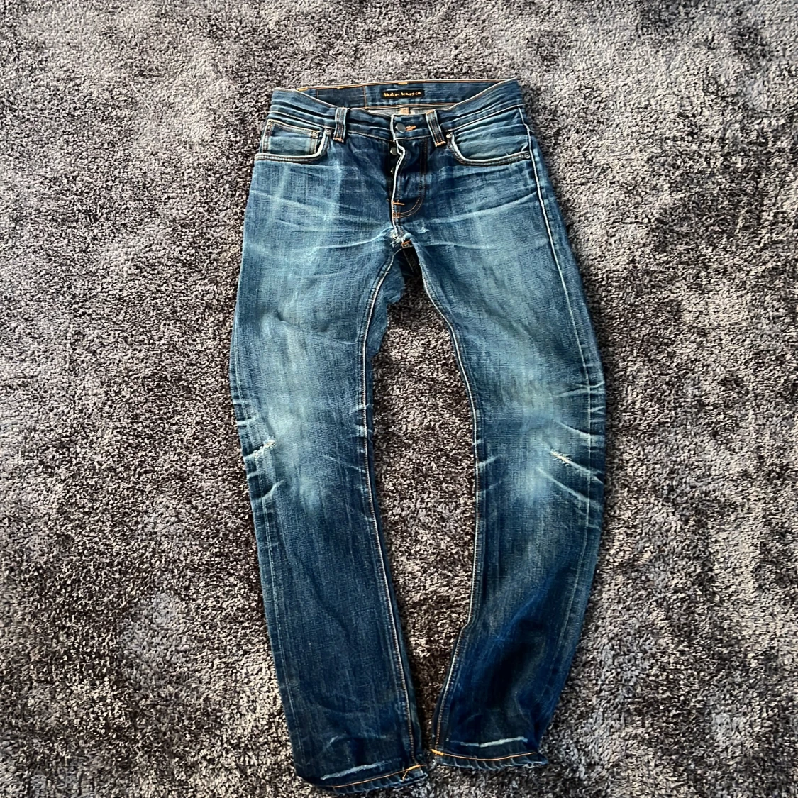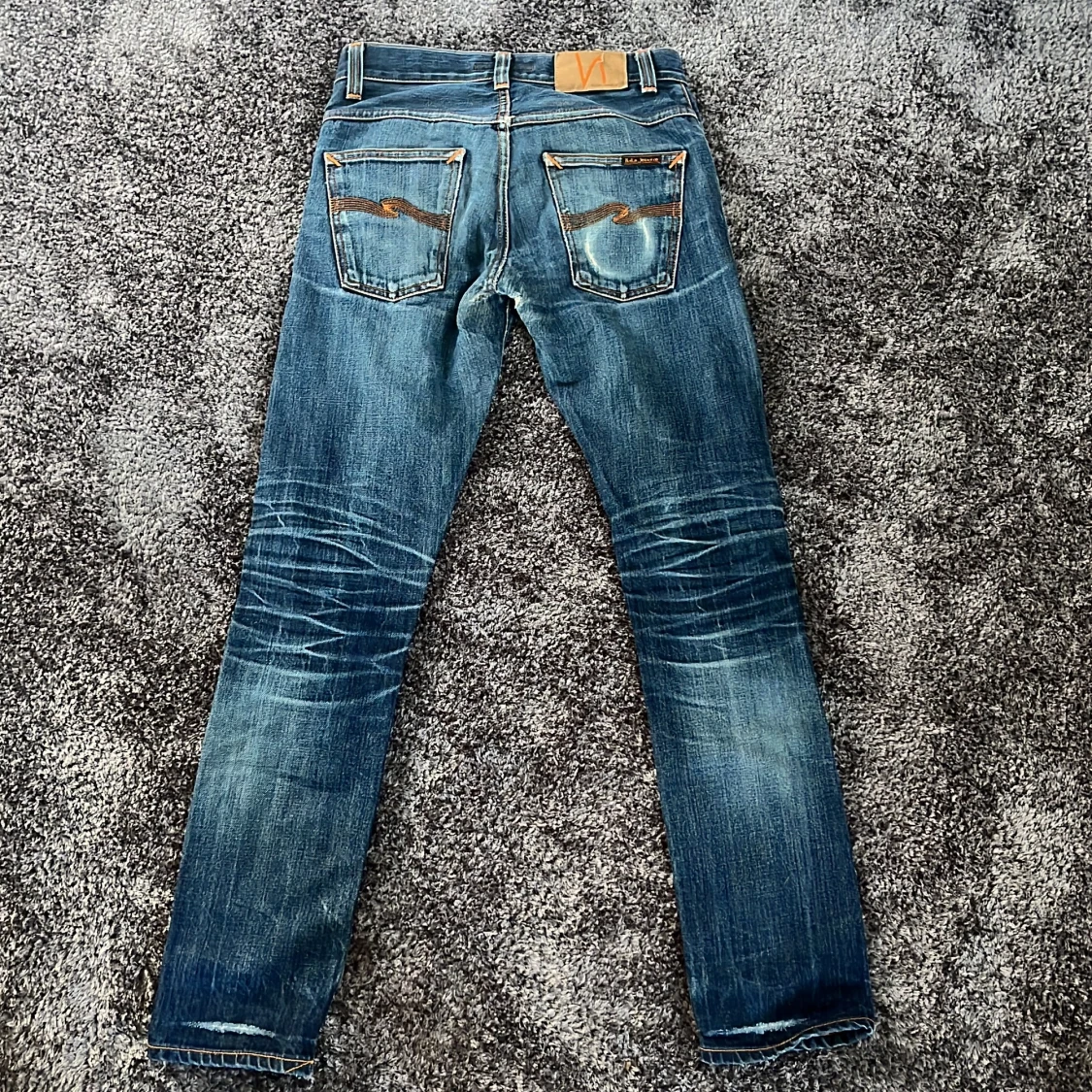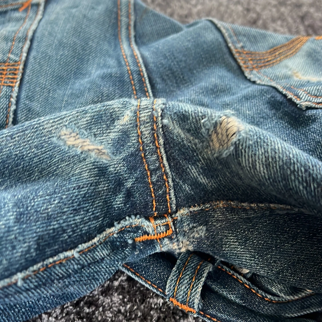 Säljer nu dessa helt galna slevedge jeansen från nudie som är nåt utav de snyggaste jag sätt. Modellen är Grim Tim. Mått: midja ca 38-39 cm, längd: 96cm ytterben. En reparation har skett (se sista bilden) nypris över 3000 kr. Hör av er vid fundering!