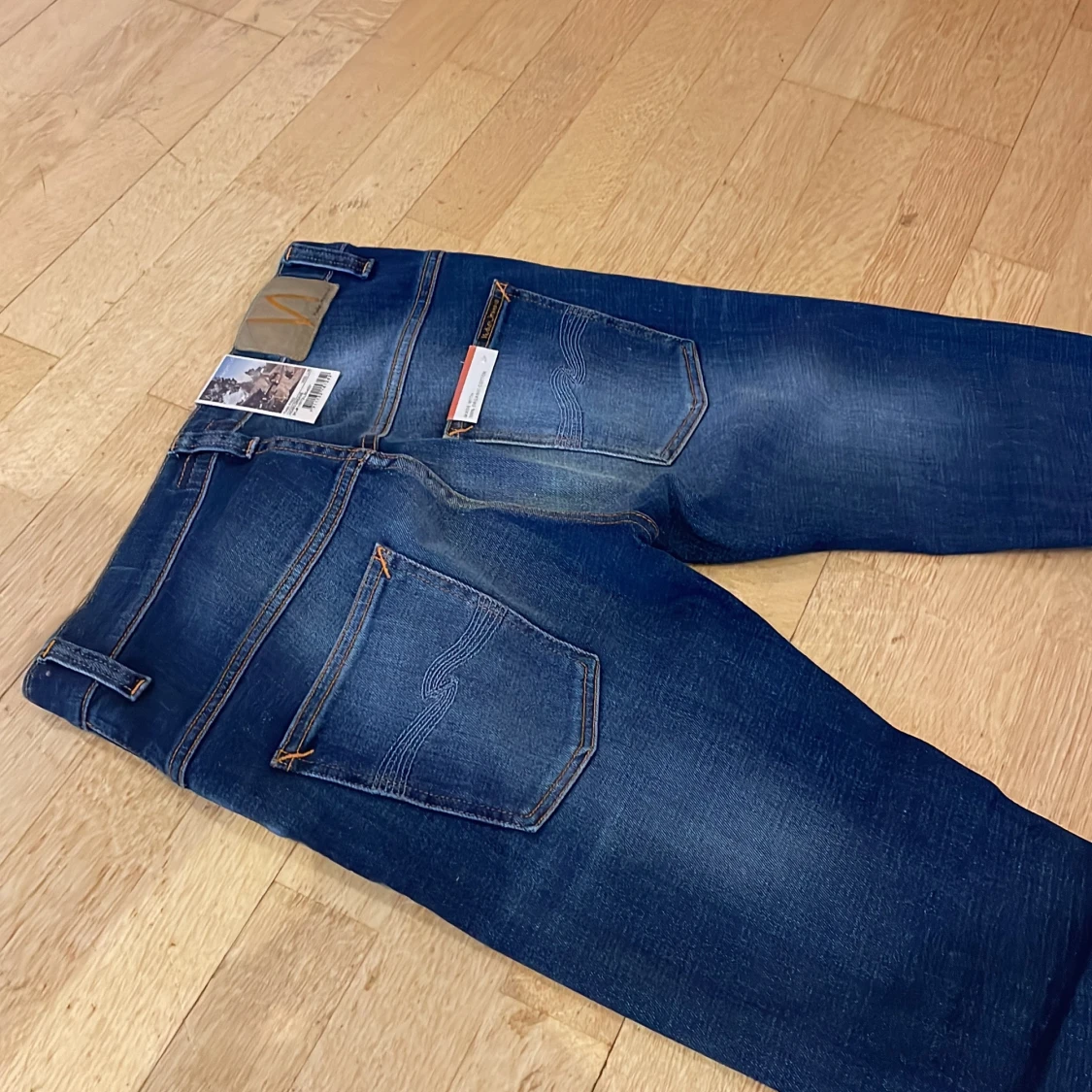Säljer dessa riktigt snygga Nudie jeans i ny skick 10/10.Storleken är 30:30 men skulle säga att dom är långa i längden! Skriv om du har några frågor 💫🍾