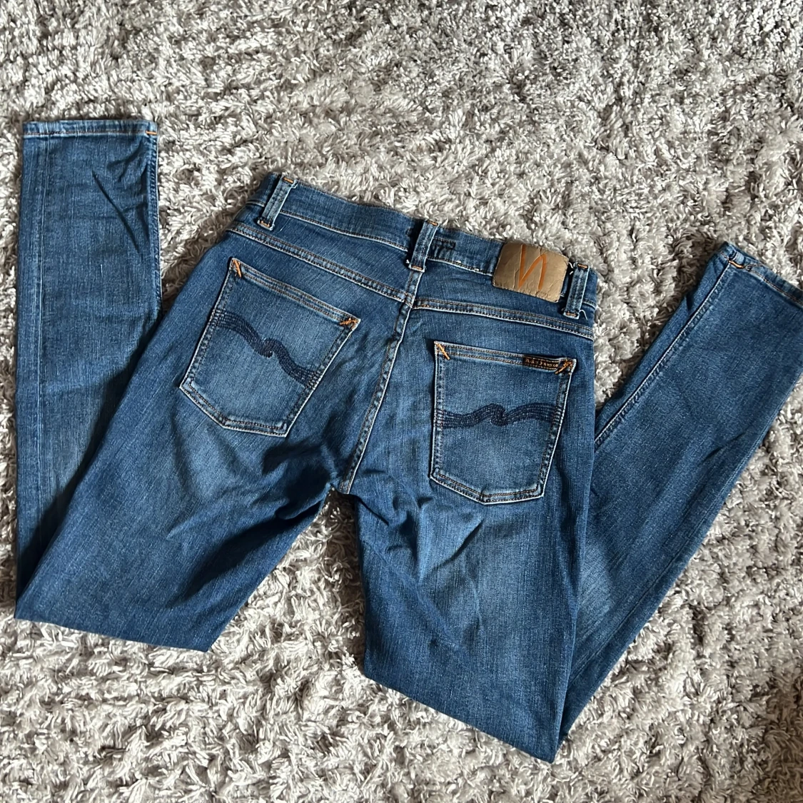 Säljer dessa riktigt snygga Nudie jeansen i modellen Tight Terry som har en slim passform. De är i bra skick utan defekter och är i storlek 29/32. Bara att skriva över frågor och funderingar.