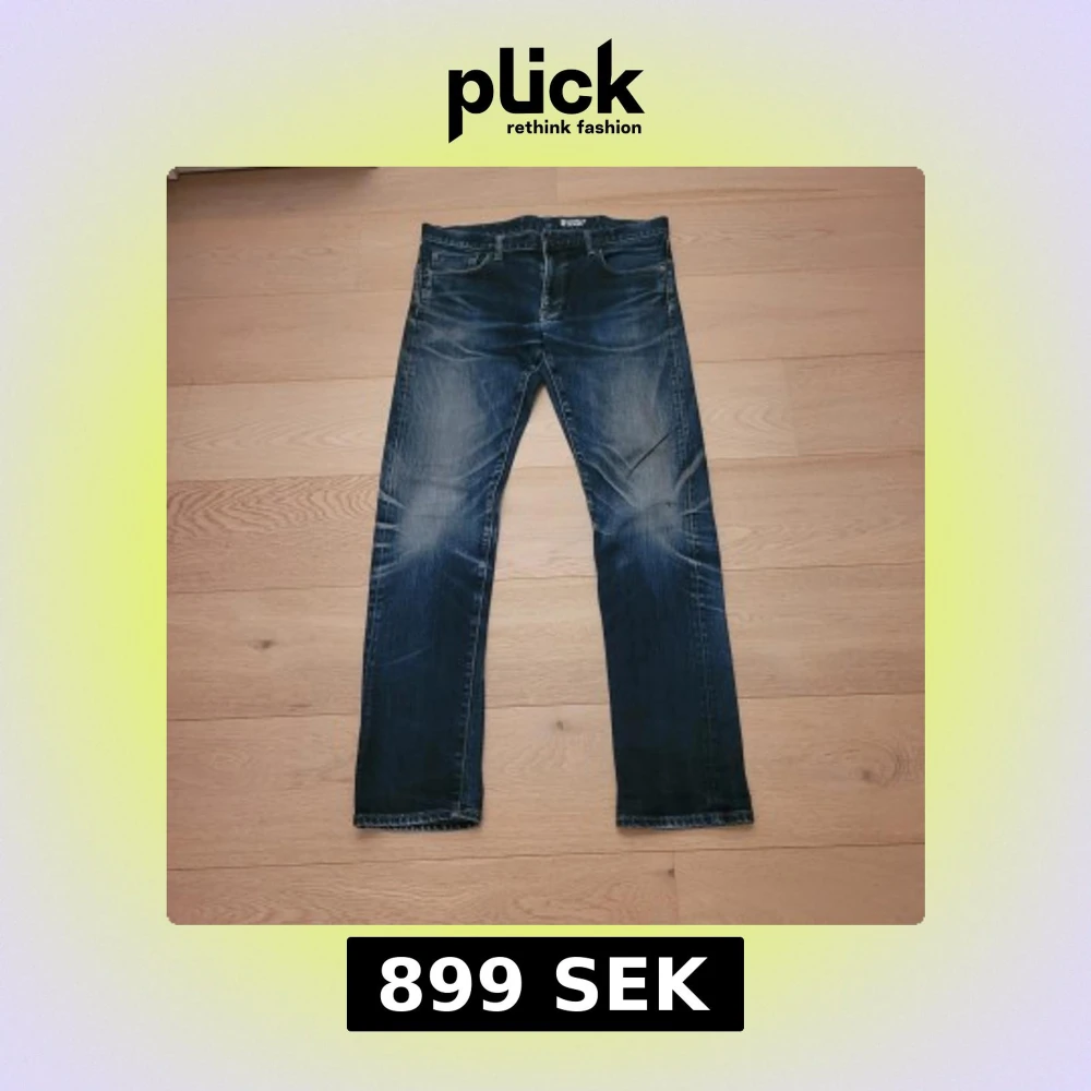 Extremt fina Selvedge jeans med otroliga slitningar! Märke: uniqlo, storlek W34L34 Mått: Midja 46 Längd 104 Benöppning 17