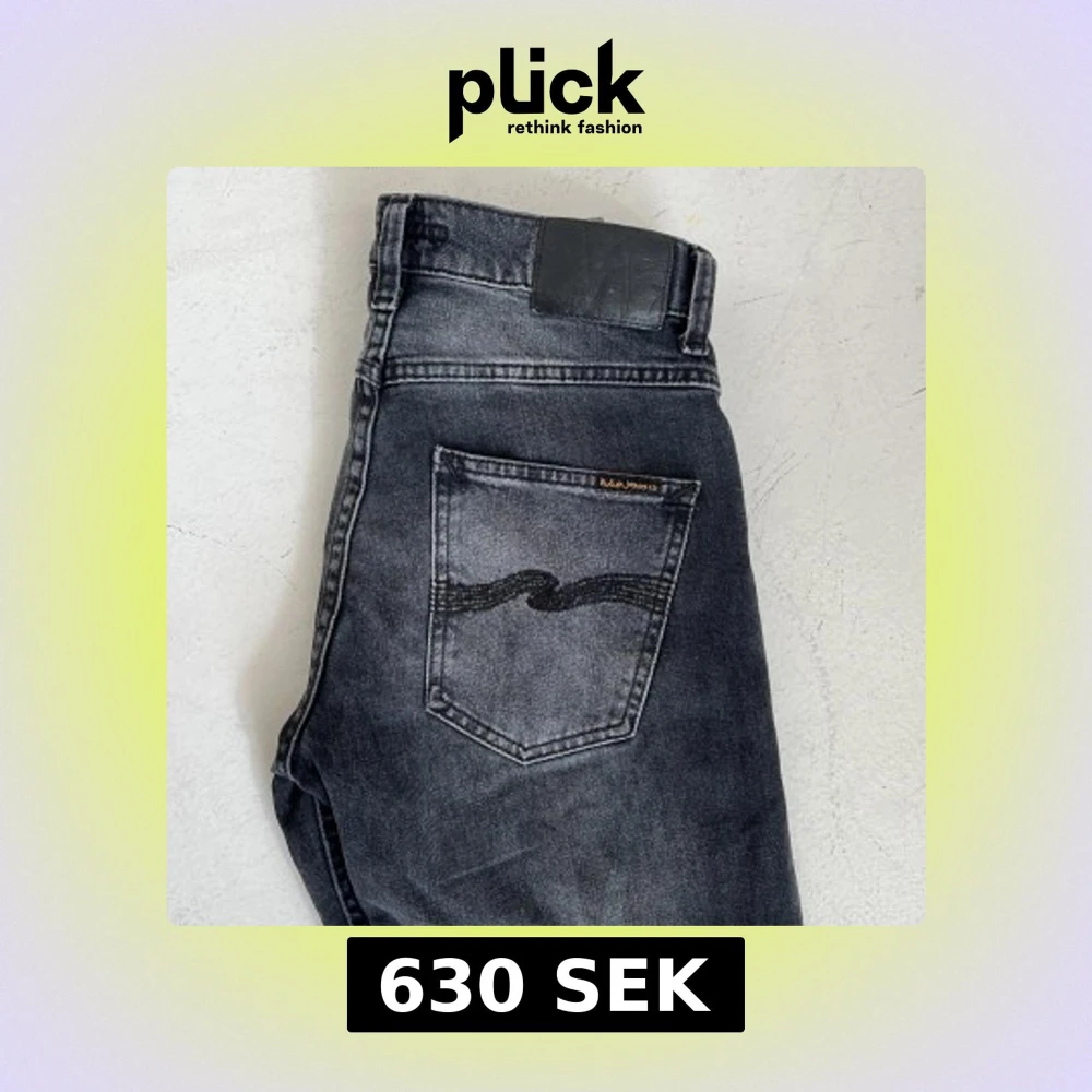 Snygga svarta jeans från Nudie Jeans, modell Grim Tim Dark Cove. Jeansen har klassisk femficksdesign, svarta sömmar på bakfickan och är tillverkade i stretchig denim av 98% bomull och 2% elastan. Perfekt passform och cool tvätt. Storlek 27/30 men avkortade något hos Nudie. Mått 93 cm se bild