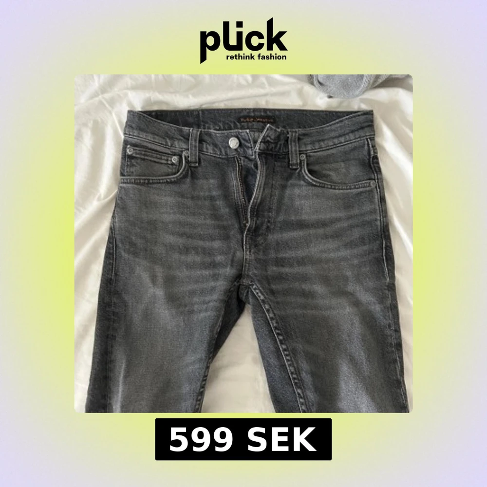 Snygga grå jeans från Nudie Jeans med klassisk femficksdesign och dragkedja. Jeansen har raka ben och subtila slitningar/tvätt för en cool look. Tillverkade i mjukt bomullstyg och passar perfekt till en avslappnad stil.