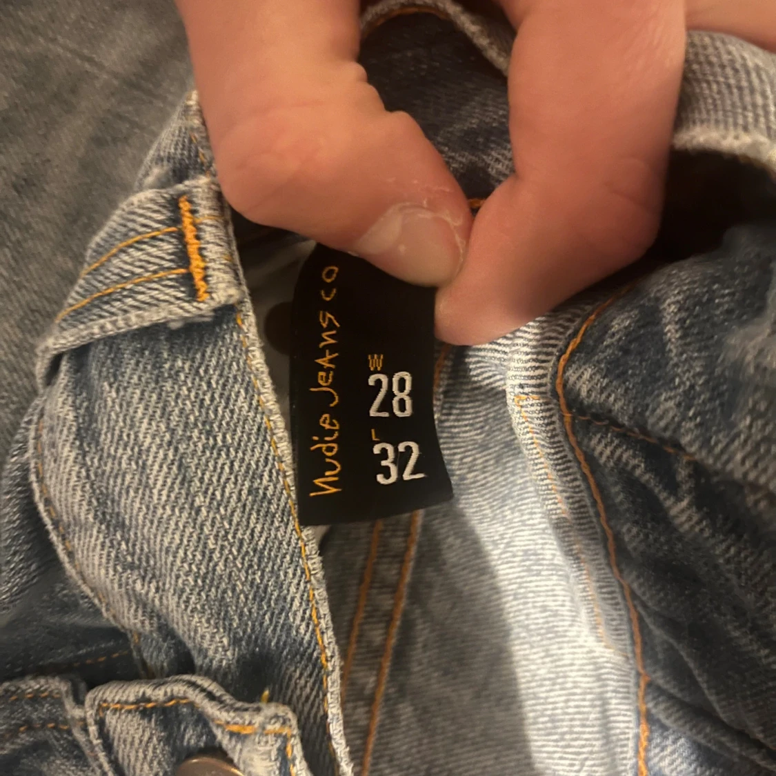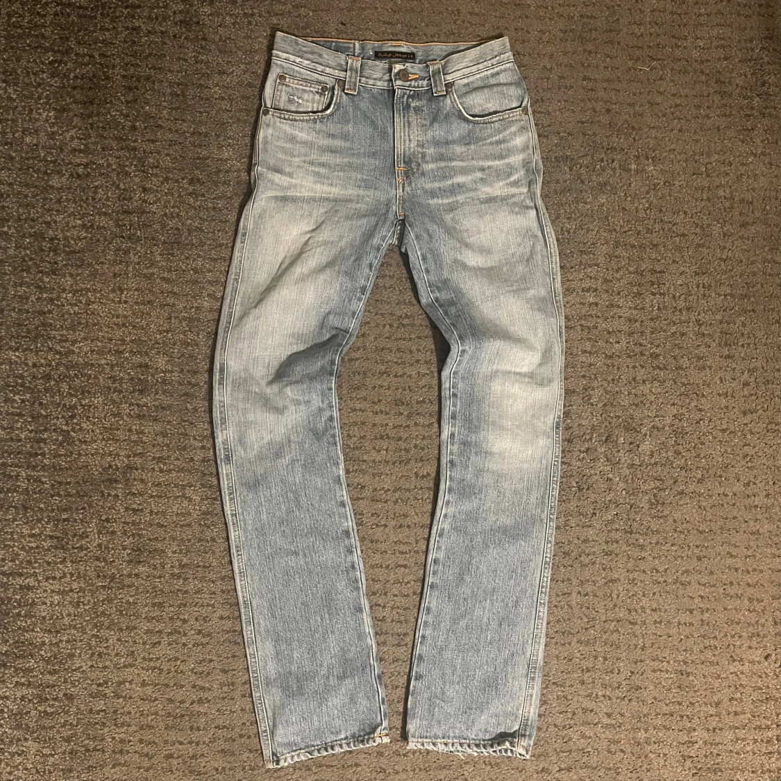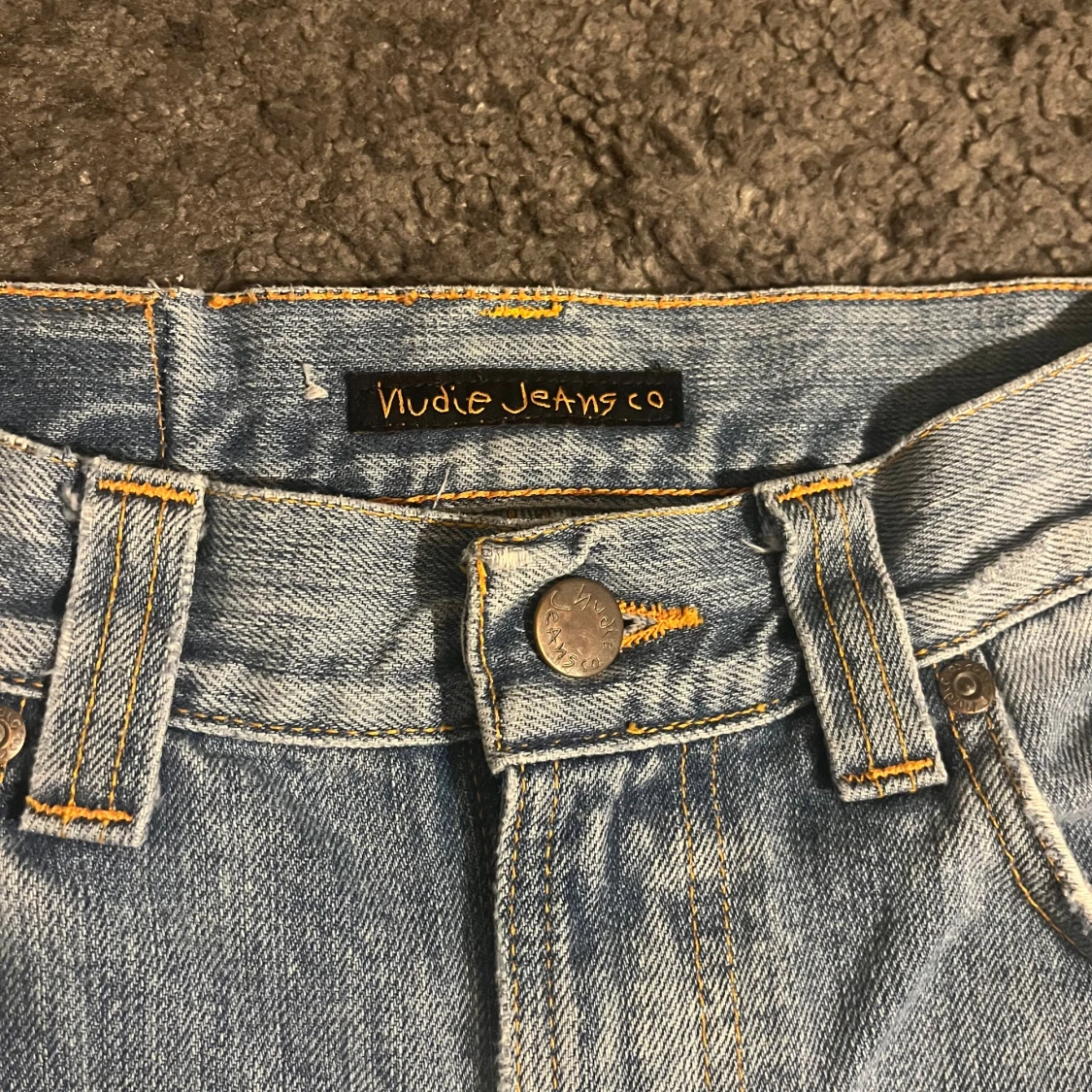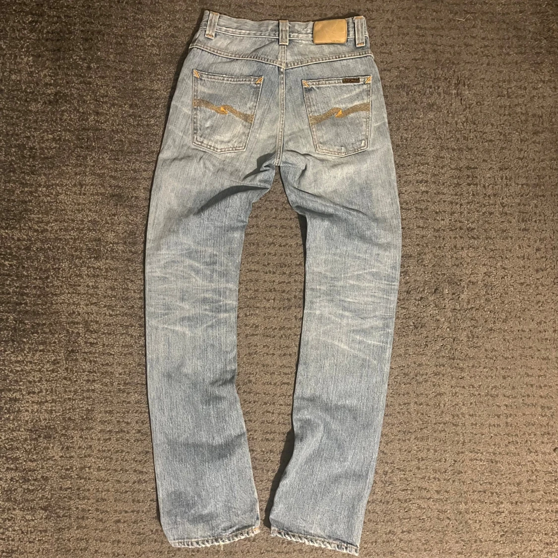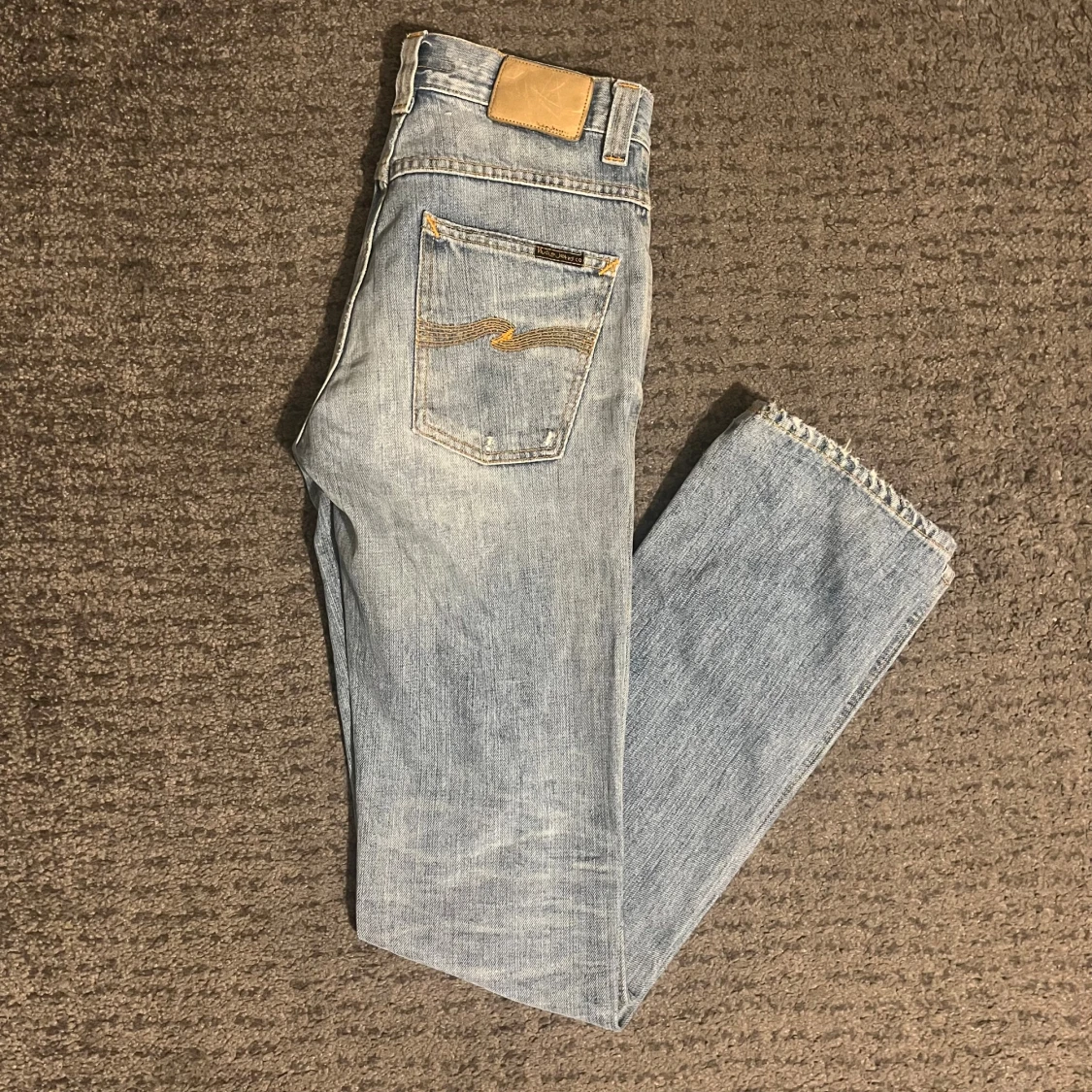 Säljer ett par slim jim nudie jeans med snygga slitningar både bak och fram. De är i mycket gott skick, inga hål. Storlek 28/32. Skriv om de finns några frågor!