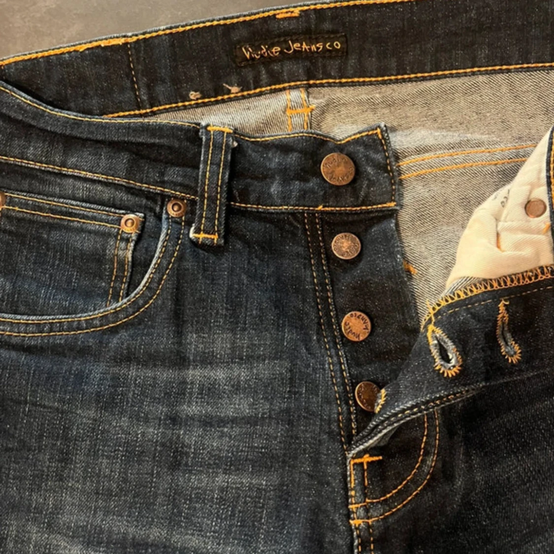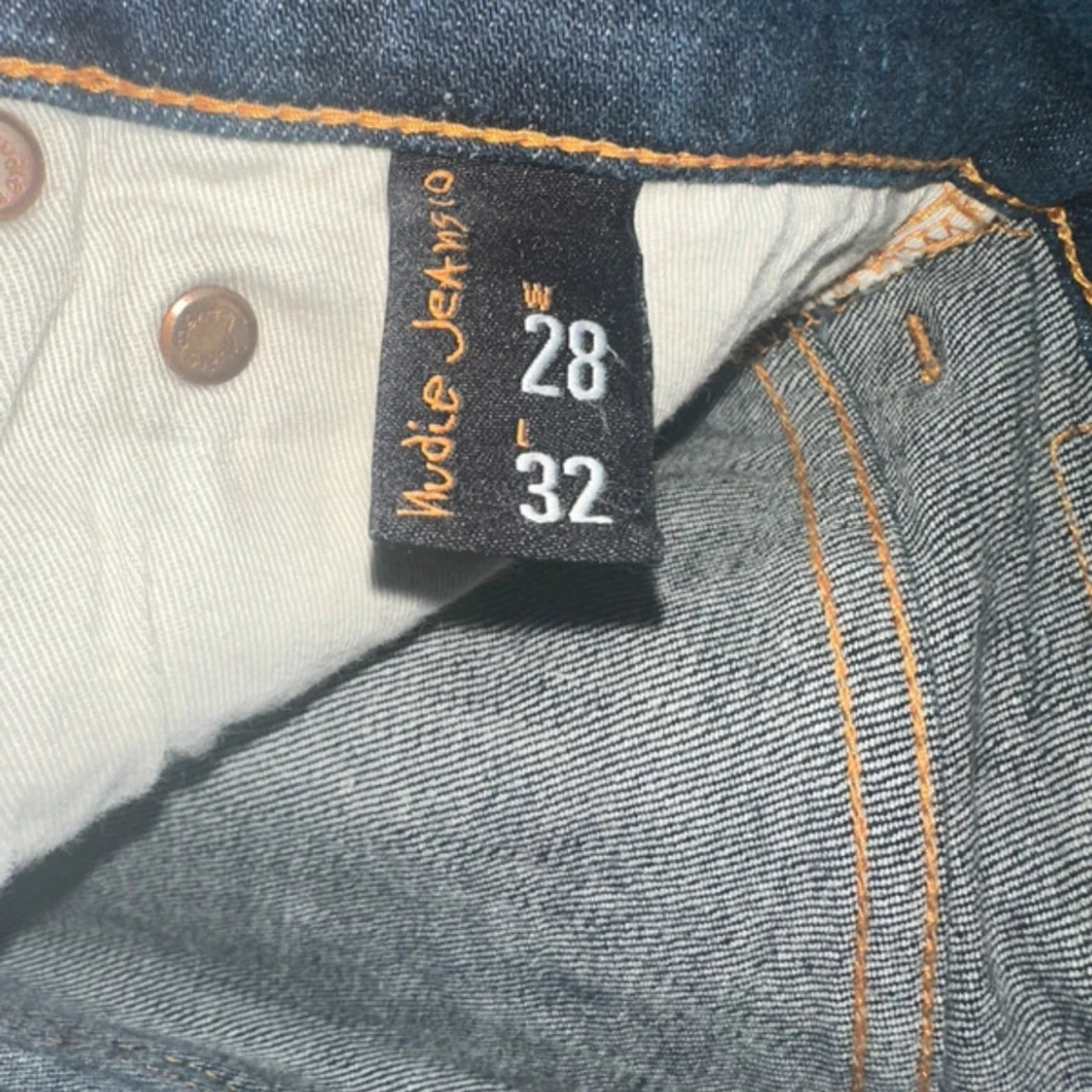 Nudie jeans i morkblå färg. Storlek W28 Och L32