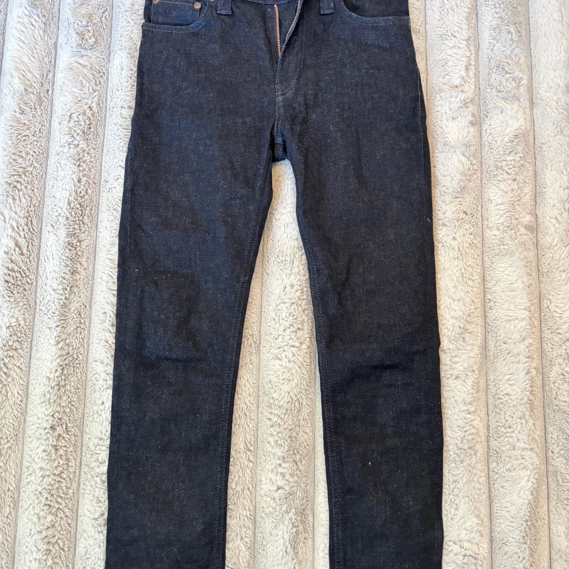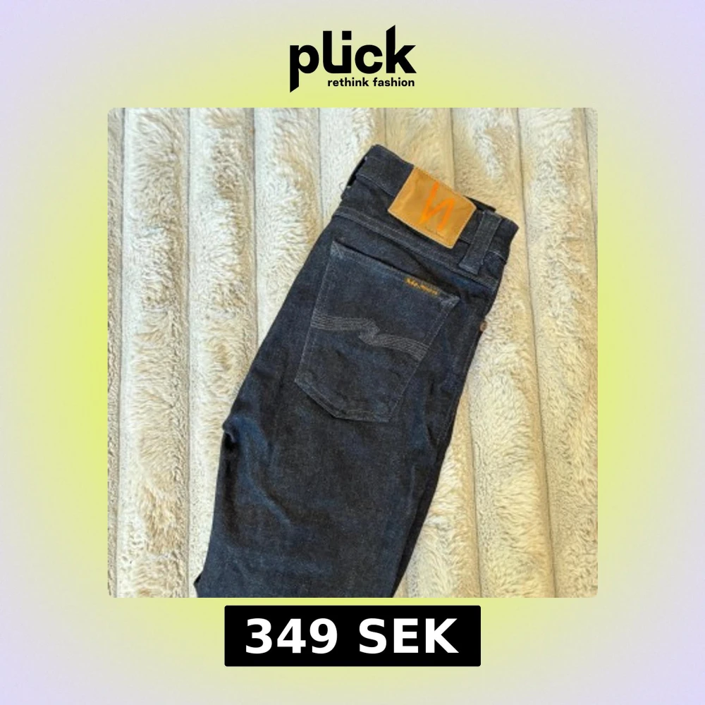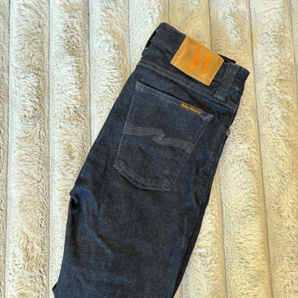 Snygga mörkblå jeans från Nudie Jeans med klassisk femficksdesign och orange läderpatch bak. Jeansen har raka ben och subtila sömdetaljer på bakfickorna. Materialet är robust denim i bomull, perfekt för dig som gillar stilrena och tidlösa jeans.