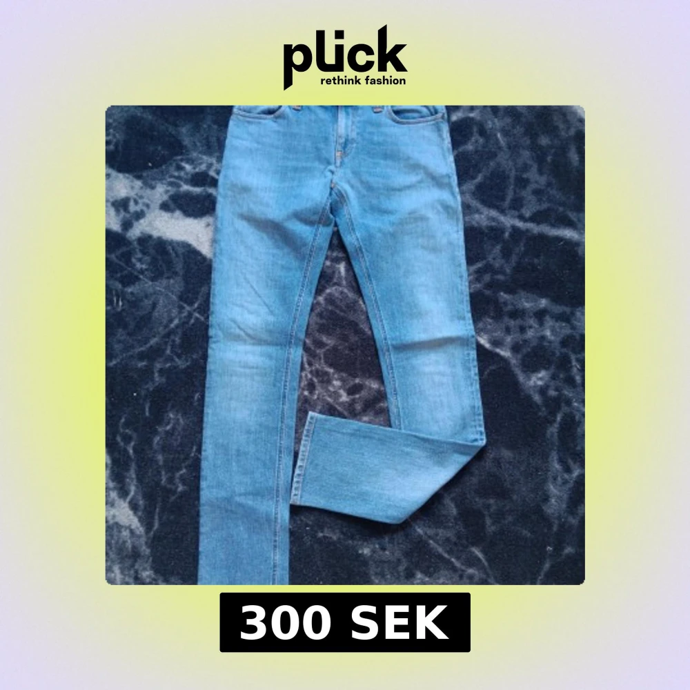 Snygga ljusblå jeans från Nudie Jeans med klassisk femficksdesign och orangea sömmar. Modellen är skinny med normal passform och har en midwaist. Jeansen är tillverkade i bomull och har Nudie Jeans logga på bakfickan och läderpatch i midjan.