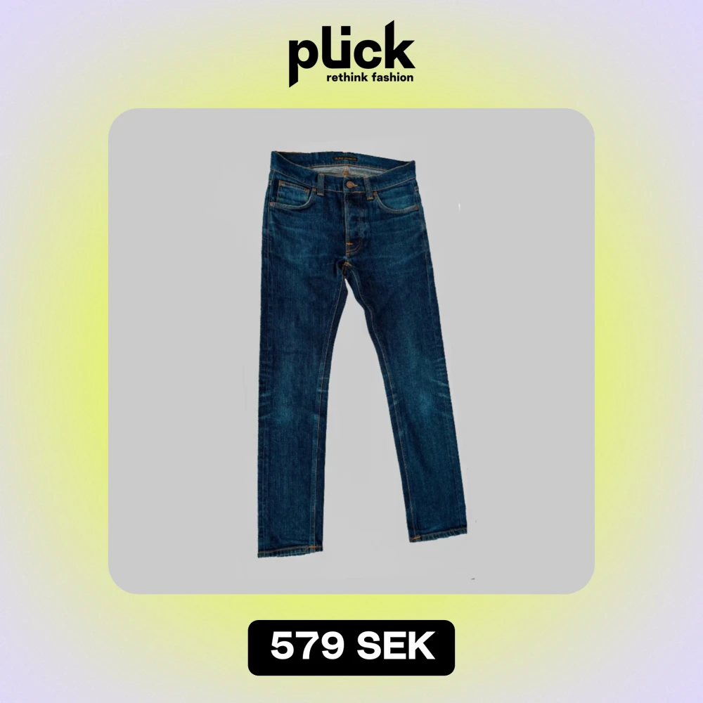 Säljer ett par snygga blå jeans från Nudie modell ”Tilted tor” i nyskick. De har en klassisk femficksdesign och är tillverkade i slitstarkt denim. Perfekta för både vardag och fest! Passformen är slimfit och de har en normal midja. Kontakta mig för mer info eller fler bilder!