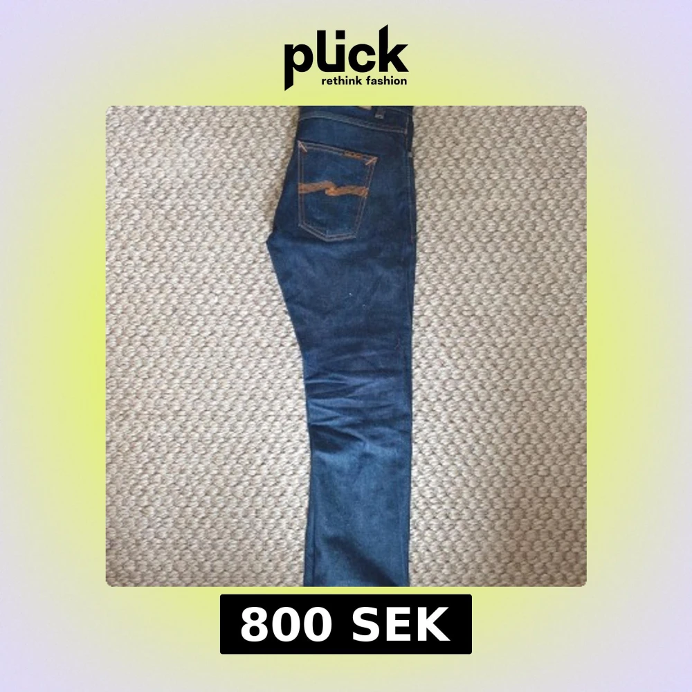 Snygga mörkblå jeans från Nudie Jeans med klassiska orange sömmar och ikonisk bakficka. Modellen har normal passform och raka ben. Tillverkade i slitstarkt bomullsjeans, perfekta för dig som gillar stilrena och tidlösa jeans.