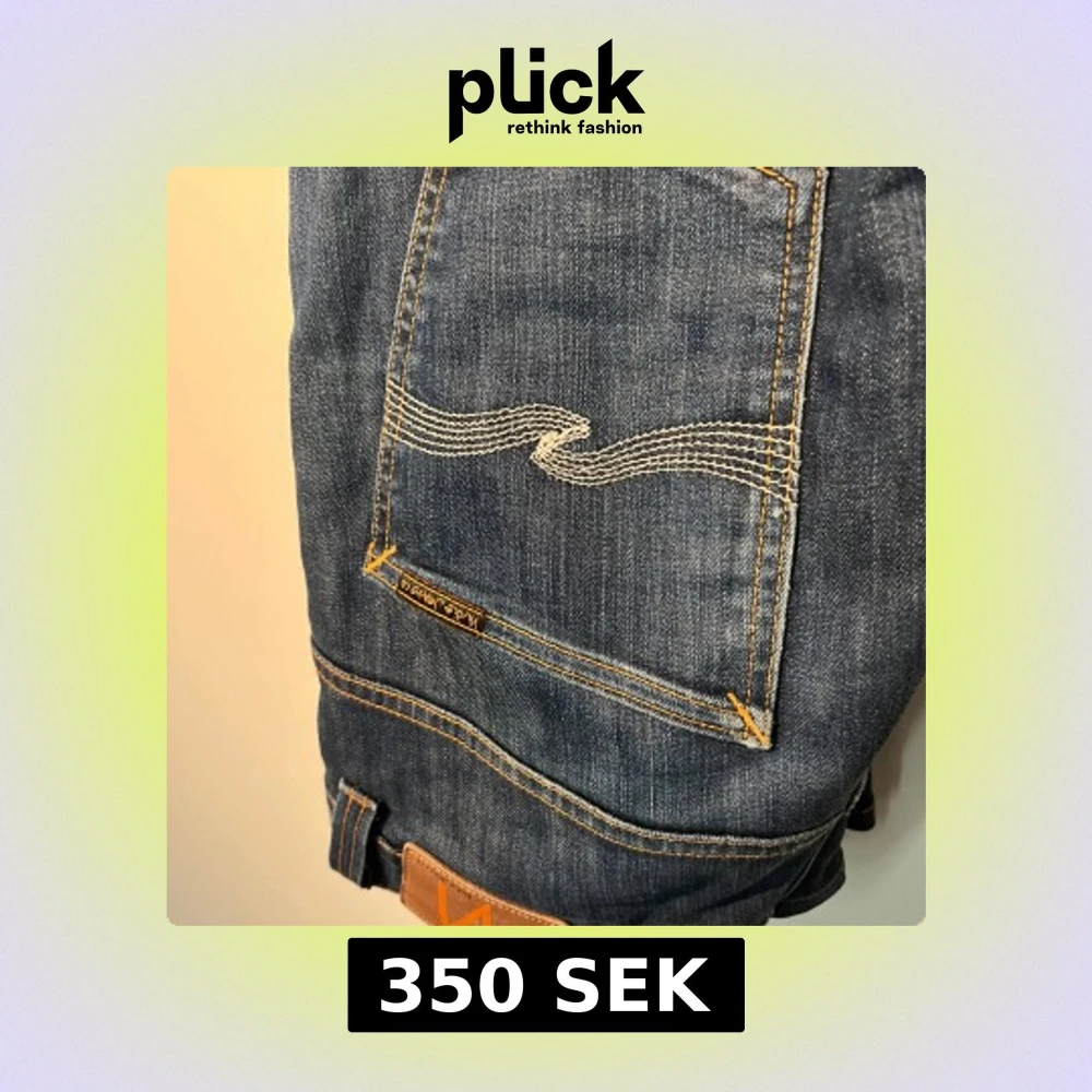 snygga nudie jeans skick 4,5/5 med riktig fet logga på bakfickan. dom passar slim/ regular fit som ungefär ett par grimtim w30 l32 passar bra om man är ca 175cm