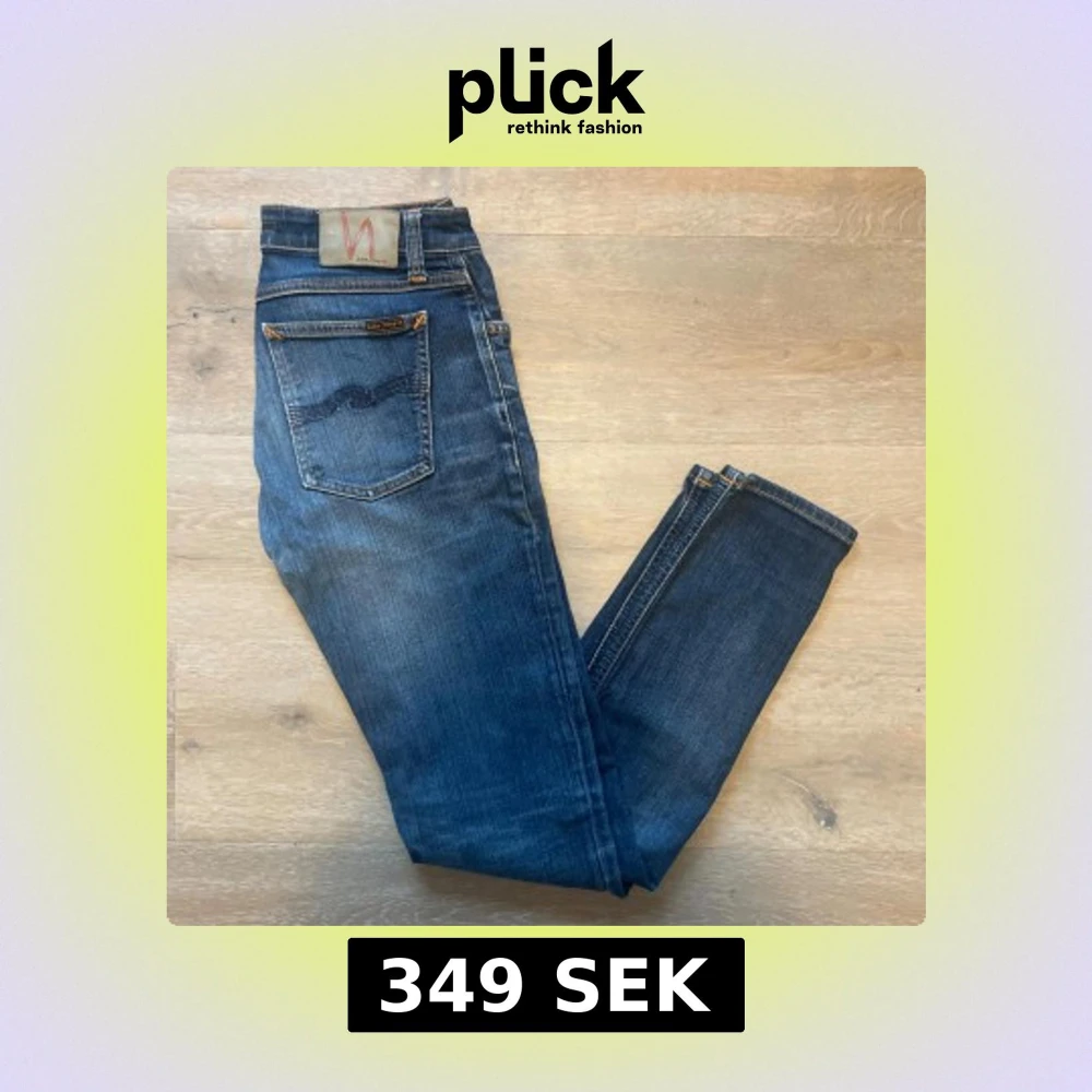 Säljer dessa riktigt snygga nudie jeans! Dem är i mycket bra skick och har inga defekter, storlek W30 och L32, måtten är 37 cm midja och 104 cm totallängd från högst upp på midjan till längst ner på byxan, hör gärna av dig vid frågor!