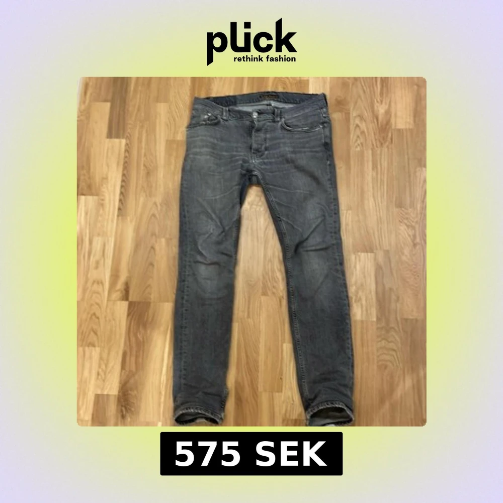 Snygga gråa Nudie jeans. Priset är ej fast huggas i sten. Skickat är helt okej eftersom att de är använda en del och har behövt lämna in dem som ni ser på baksidan där dem sytt.