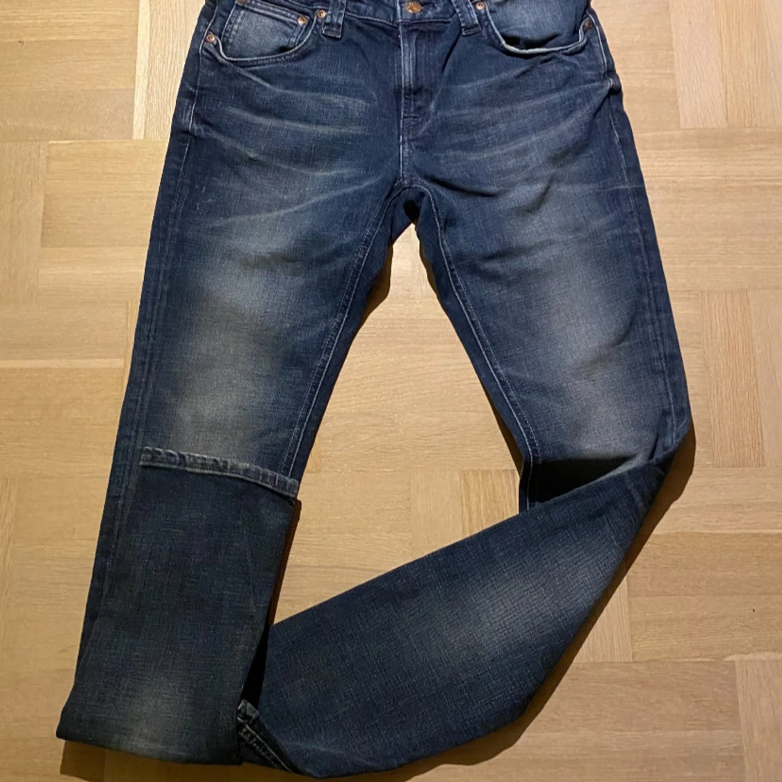 Jag säljer ett par riktigt snygga jeans från nudie jeans🙌 || De är i mycket gott skick!|| L-32 W-30|| Kontakta mig om fler frågor😉||