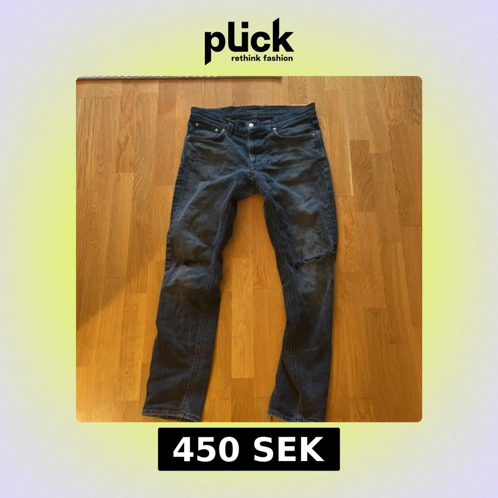 Säljer dessa svarta/gråa nudie jeans med slitningar. Storleken är 31/32! Priset går att diskuteras vid snabb affär.