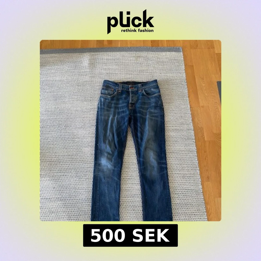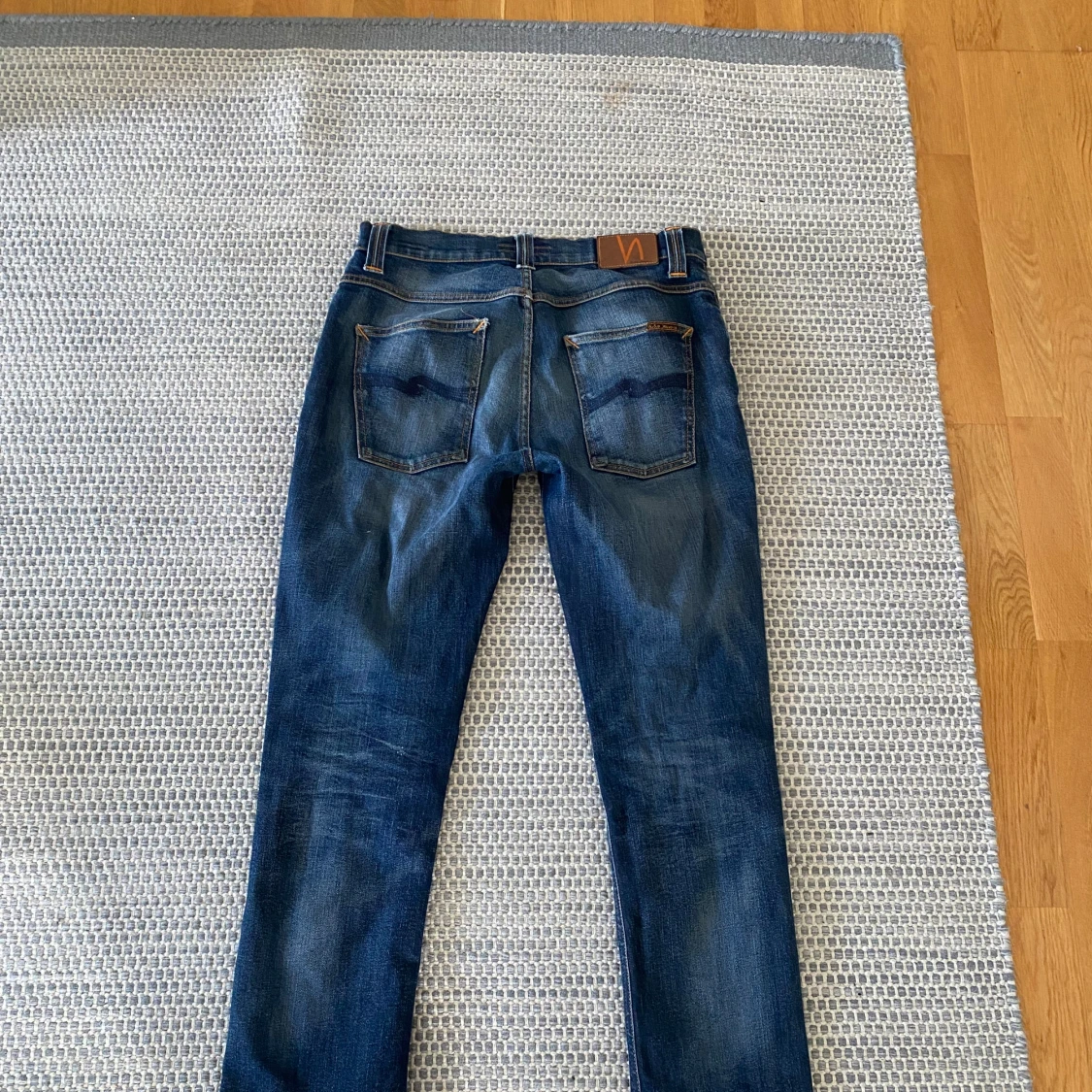 Snygga mörkblå jeans från Nudie Jeans med klassisk femficksdesign och kontrastsömmar. Jeansen har en rak passform och är tillverkade i slitstarkt denimtyg av bomull. Bakfickorna har Nudie Jeans karakteristiska broderi och läderpatch i midjan.