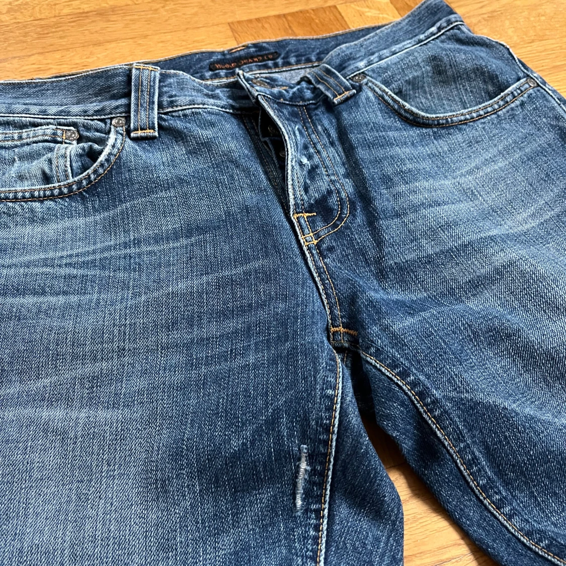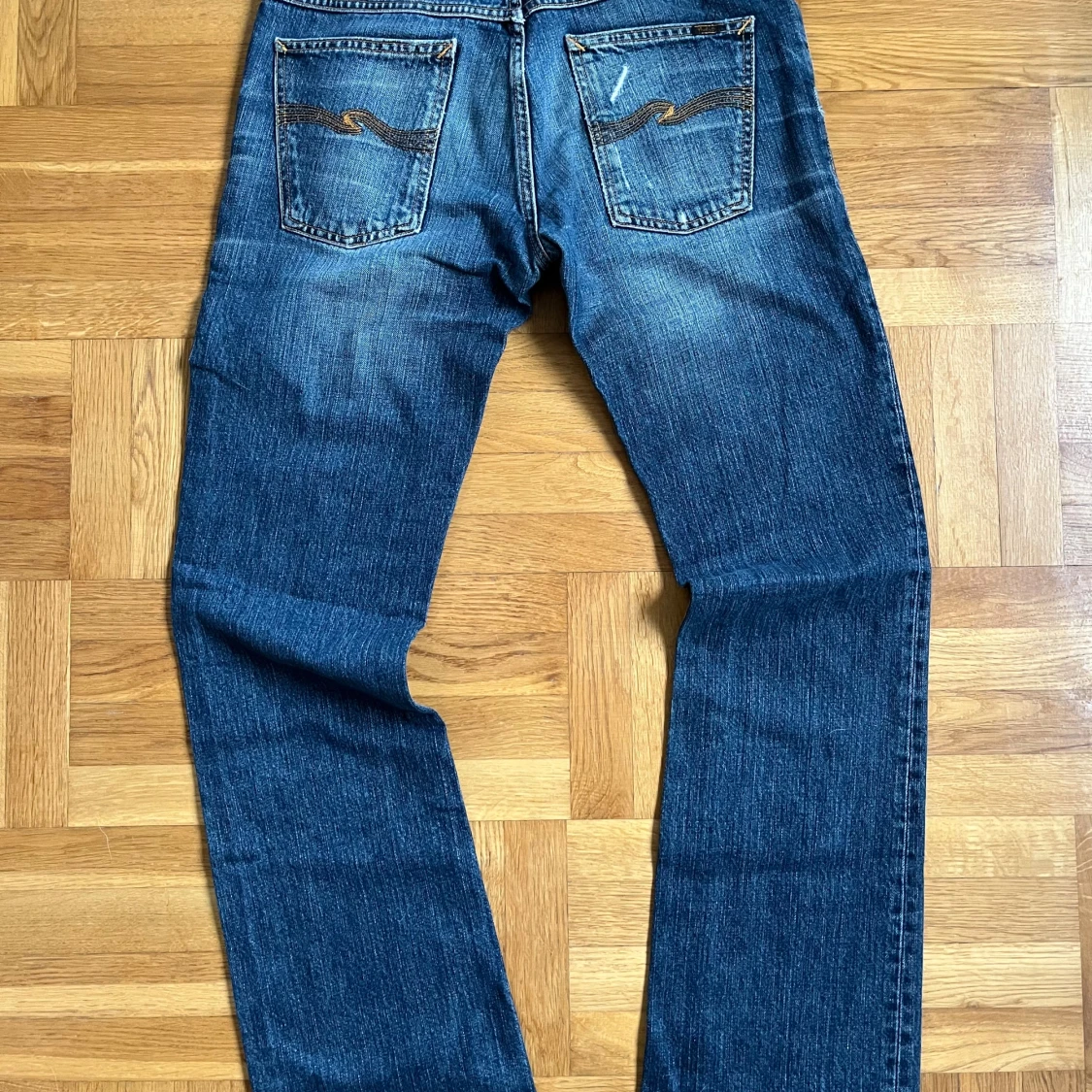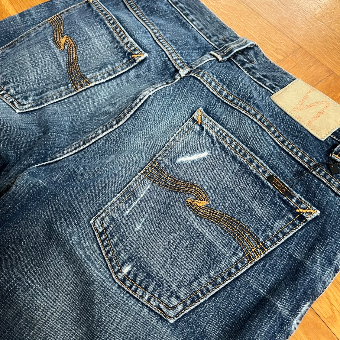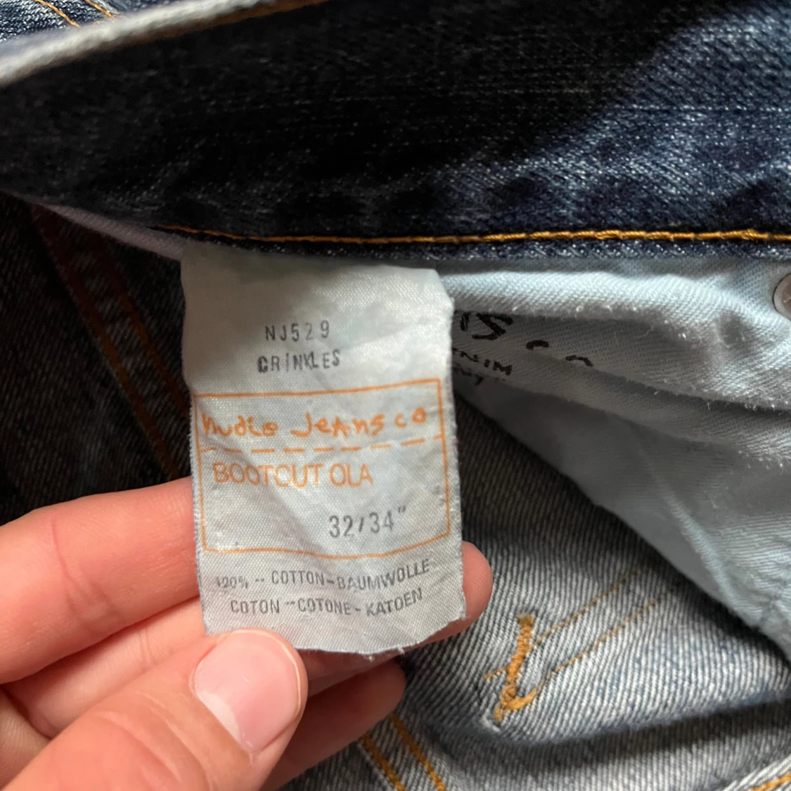Riktigt coola Nudie jeans i modellen ”Bootcut Ola”. Riktigt svåra att få tag på och dessa är även i utmärkt skick! Snygga lagningar på bakfickan och på lite andra stället, skriv dm om du vill ha mer information som mått etc. Strl 32/34!