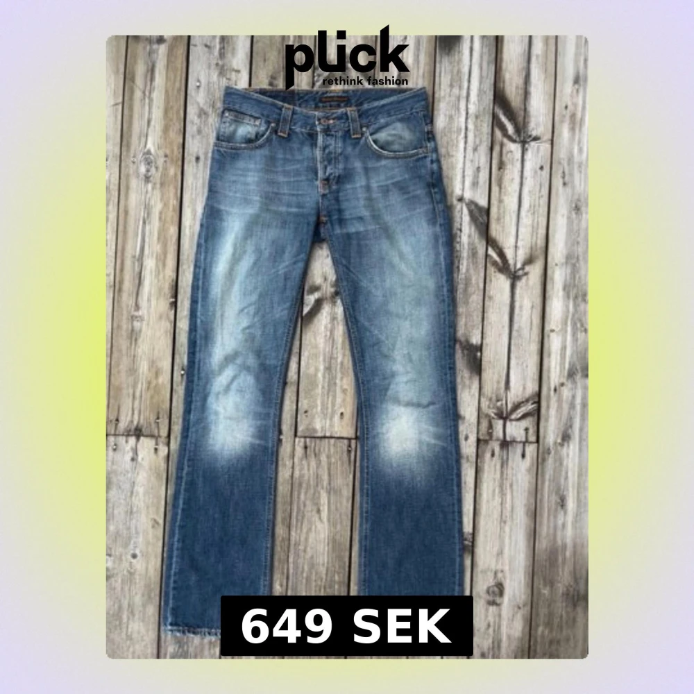 Säljer dessa feta jeans från Nudie. Storlek 31/34. Modellen heter Bootcut Ola och försvann 2016, ett sällsynt exemplar alltså! Lätt utsvängd modell. Härlig tvätt och fint skick. Jag på bilderna är 178 cm, de är för långa men stackar fint ändå. Dova minimala fläckar/slitage kan förekomma på byxorna, men inget som man ser/tänker på vid första anblick. Byxorna är i riktigt fint skick för dess ålder. Ett perfekt par jeans för den denimintresserade! 🙌 Midja: 41–42 cm Ytterbenslängd: 110–111 cm Benöp