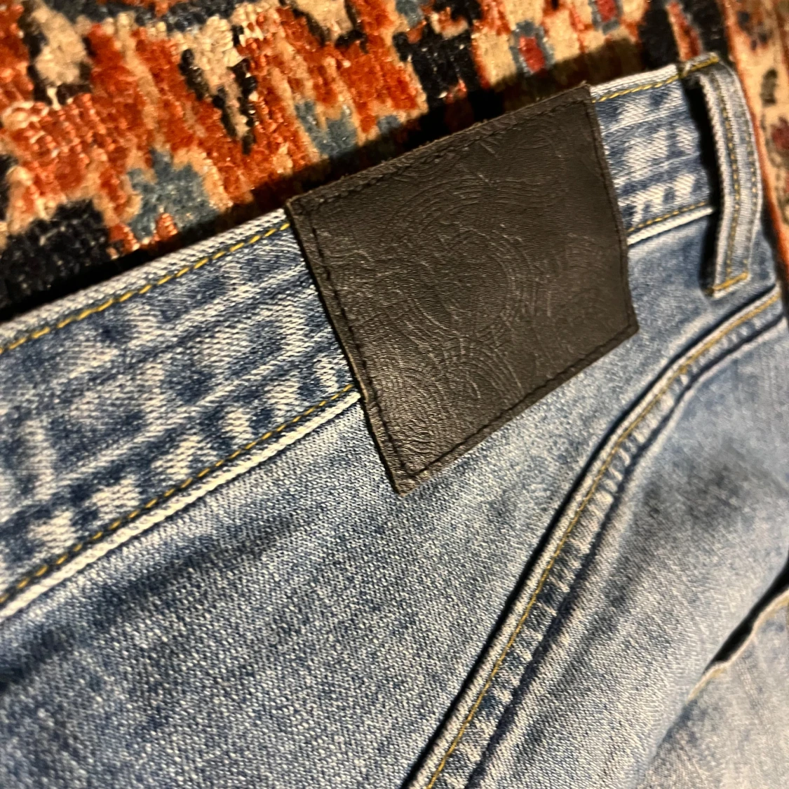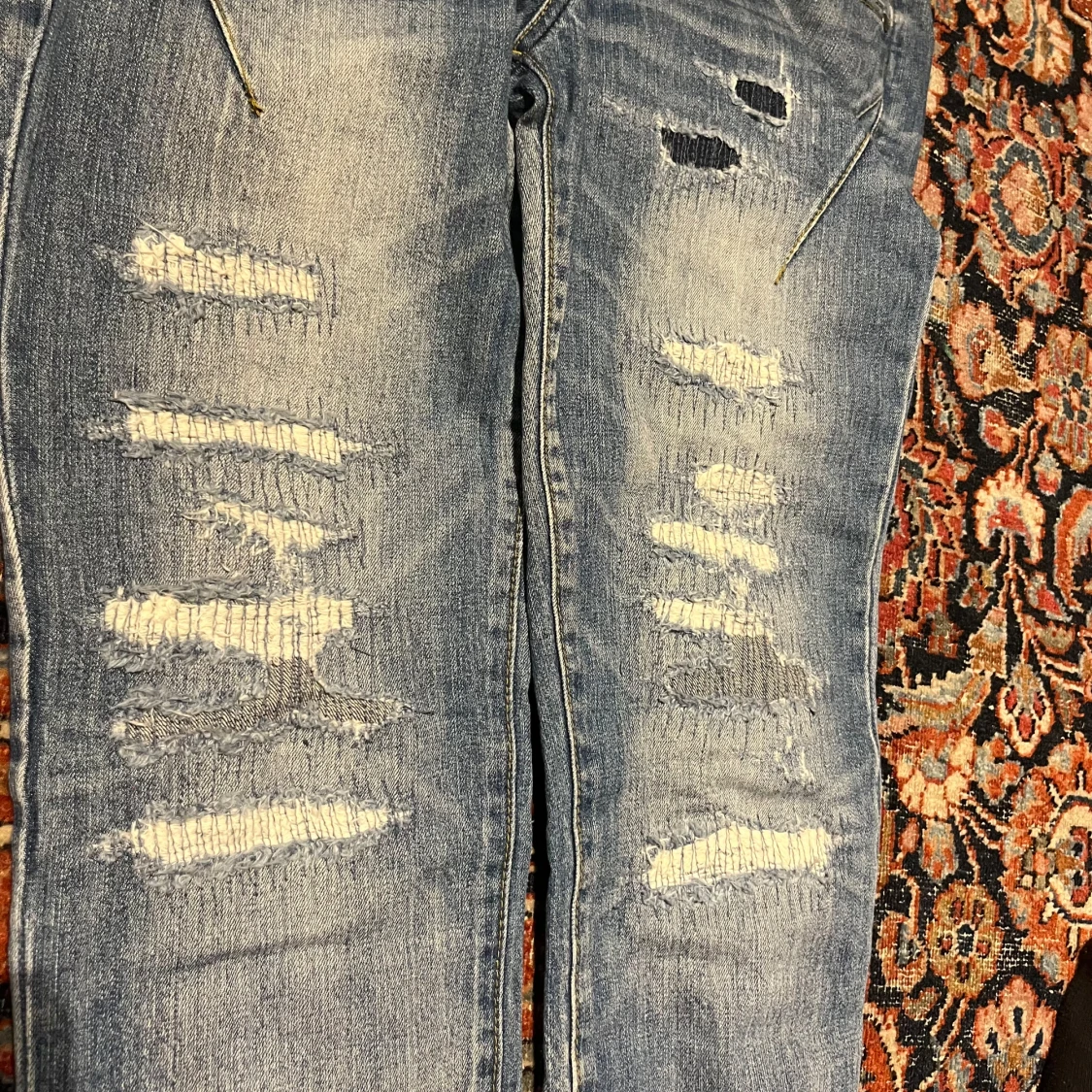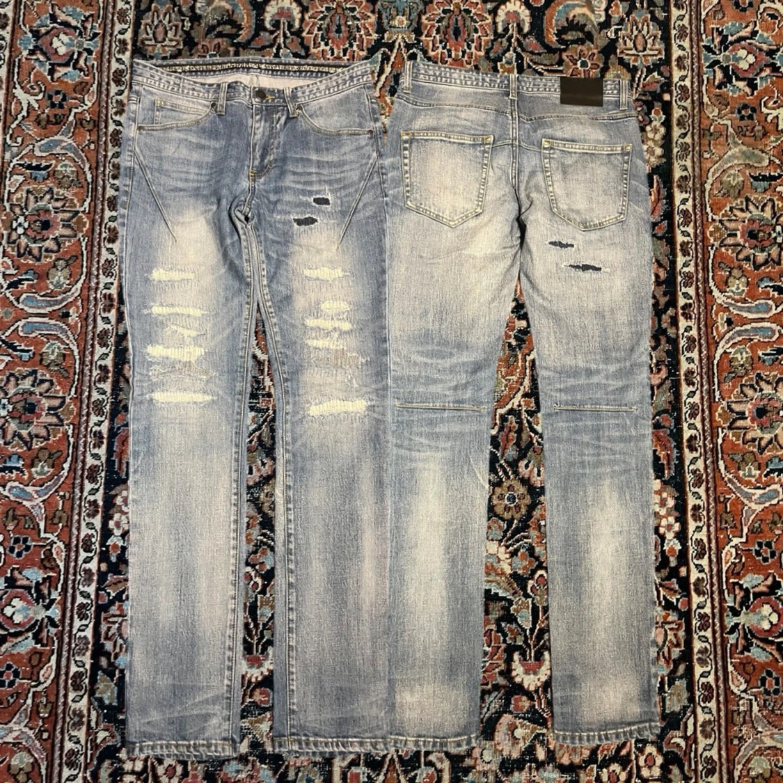 Helt sjukt snygga number (n)ine jeans, köpte dessa jeans rakt från Japan och är extremt svåra att få tag på. Dessa har riktigt feta slitningar vilket gör dens unika look! Mått: Midja: 39,5cm Längd: 101cm Benöppning: 15,5cm