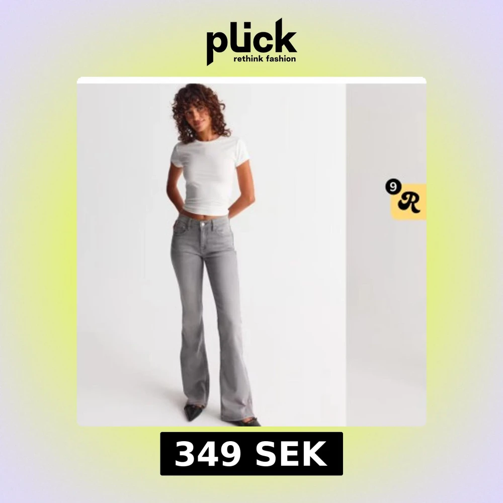 Snygga grå bootcut jeans med låg midja. Perfekta för en stilren look. Endast använda en gång, så i fint skick. De är tillverkade i ett bekvämt material som ger en bra passform.
