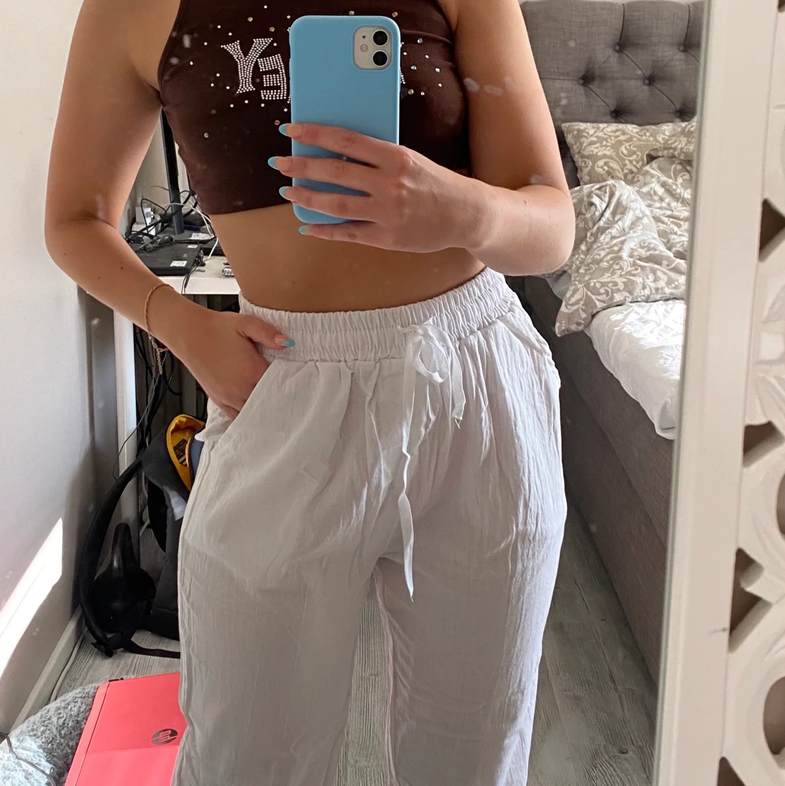 Super snygga linnebyxor, fick i födelsedagspresent säljer pga att jag har två st. SUPER fina passar mig som är xs-s, och 162cm