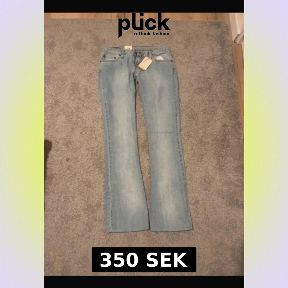 Jättefina ljusblå jeans från dallas jeans💕 prislapp kvar, säljer du de inte passade mig! Modell: bootcut/flared med ultra låg midja😍 Mått: midja - 41cm innerbenslängden - 83cm