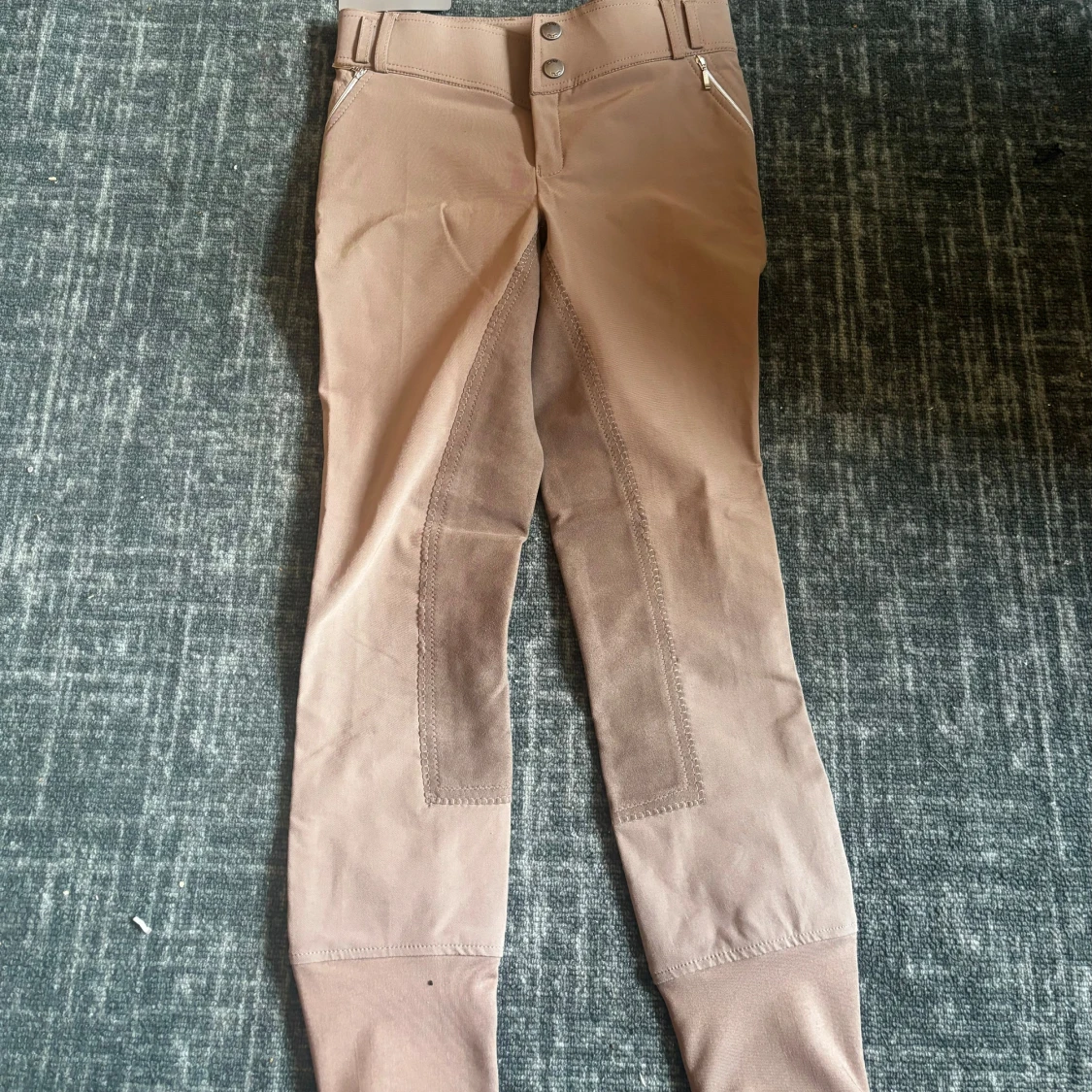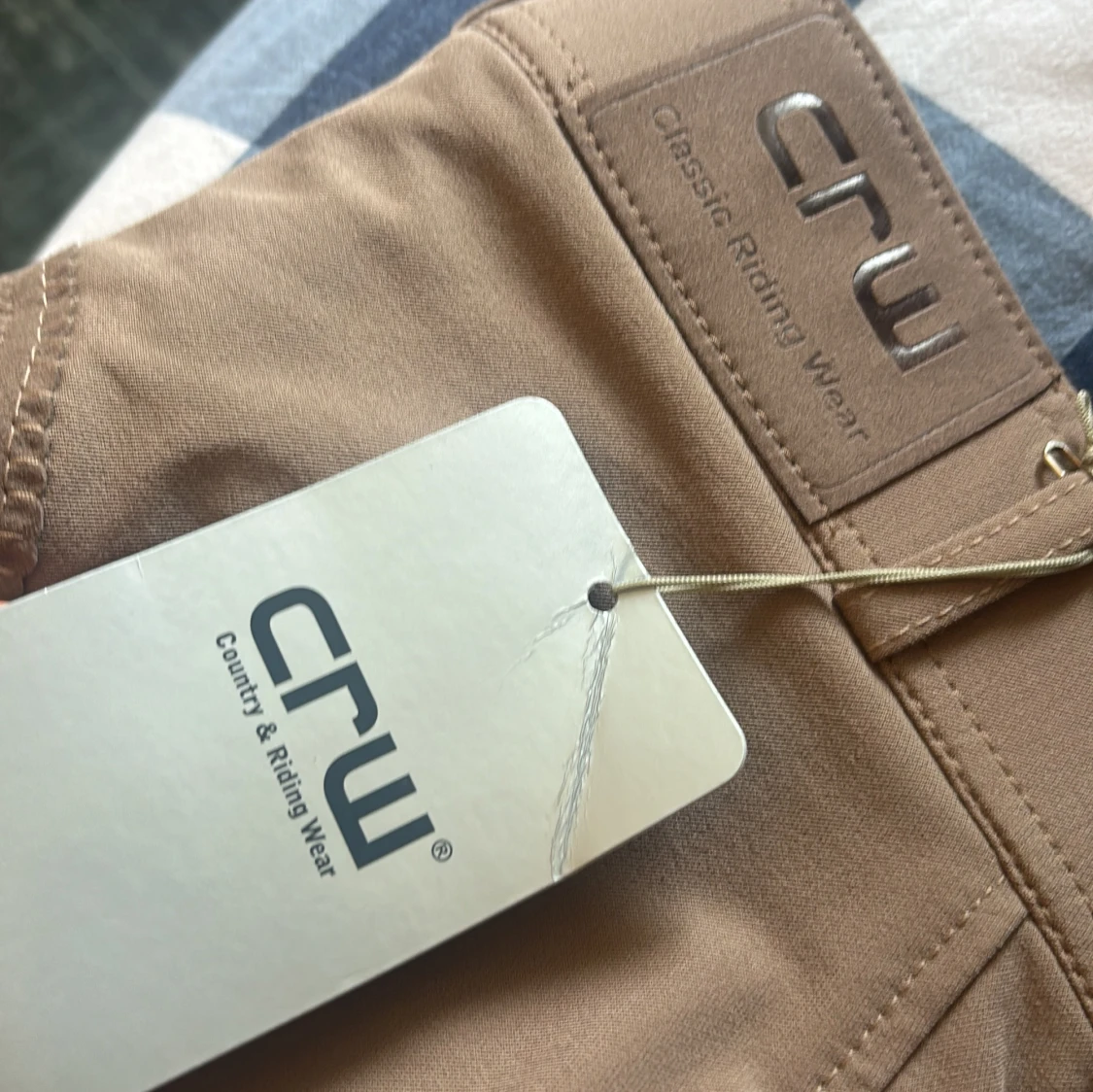 Snygga beige ridbyxor från CRW med förstärkta partier på insidan av benen och sätet. Byxorna har dragkedjeficka fram, bälteshällor och tight passform. Perfekta för dig som gillar ridning och vill ha stilrena, funktionella byxor.