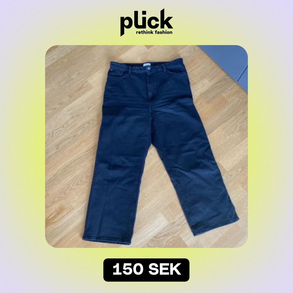 Ett par svarta jeans från Lindex som slutar vid vristen och är höga i midjan. Knappt använda.