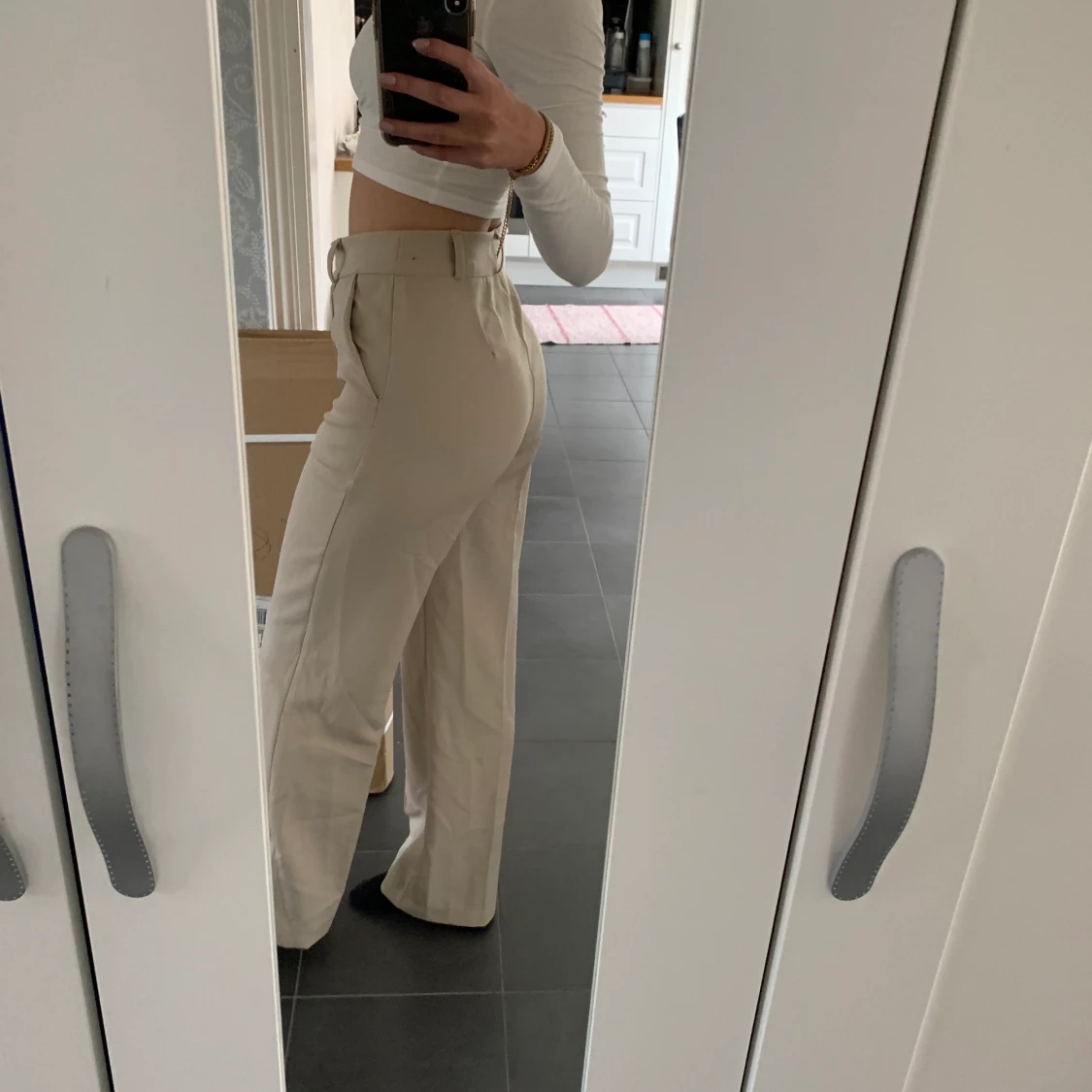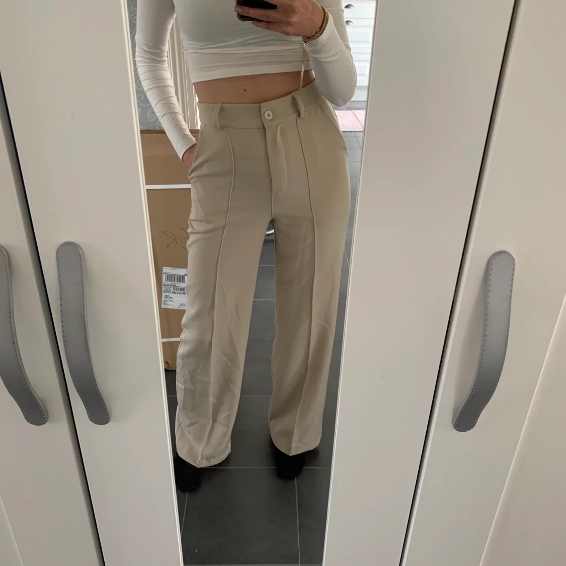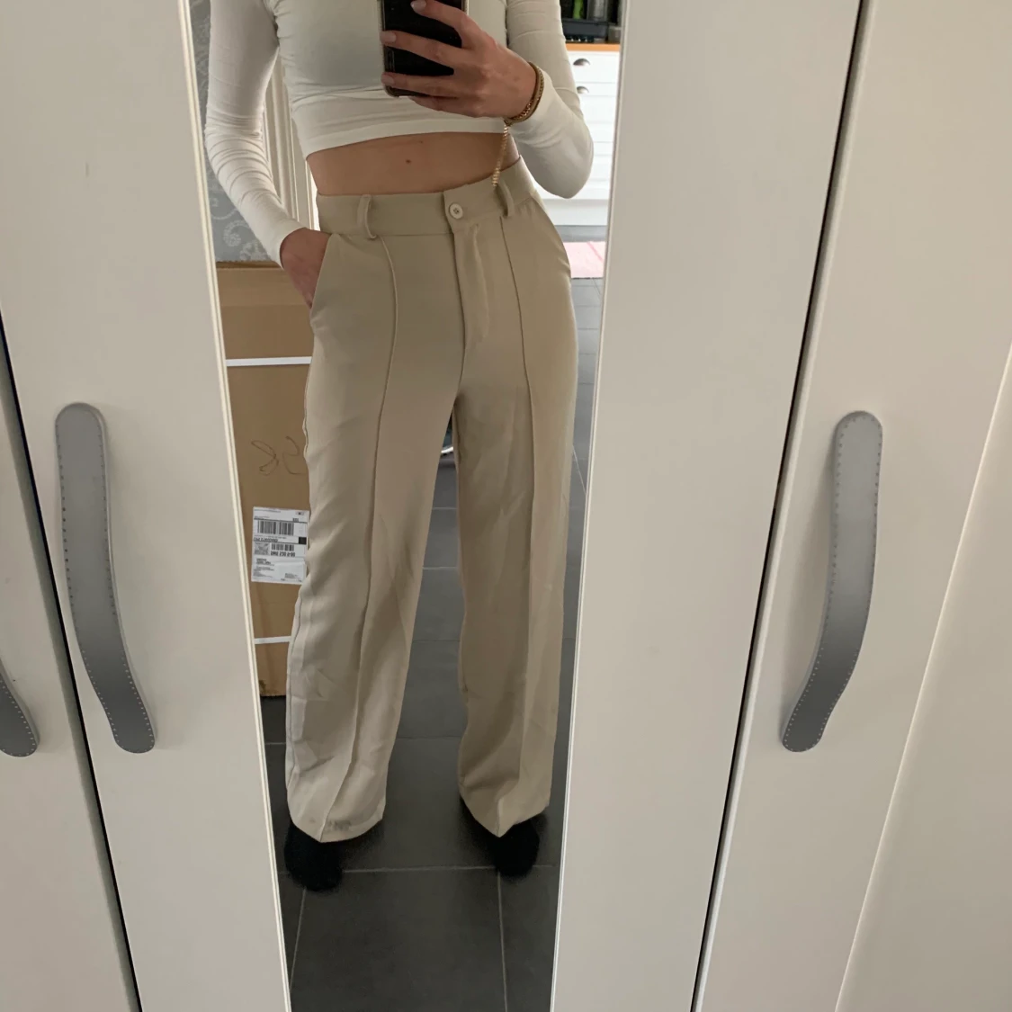 Nästintill oanvända kostymbyxor i väldigt bra och mjukt material! Riktigt bra kvalité och sköna att ha på sig - väldigt stretchiga! Från designbysi! ❣️köparen står för frakten☀️jag är 1.66! Dessa är långa i benen