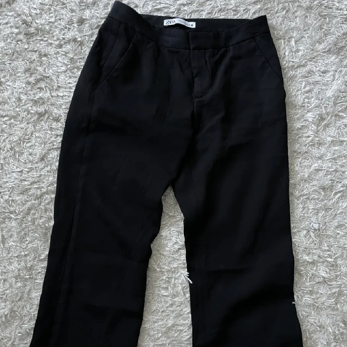 Lågmidjade kostymbyxor ifrån Zara 💕 Slutsålda på hemsidan. Knappt använda, säljer då jag har flera svarta kostymbyxor 🫶🏼 Strl XS, köptes för 559kr De är bra i längden på mig, är ca 167cm 🩷