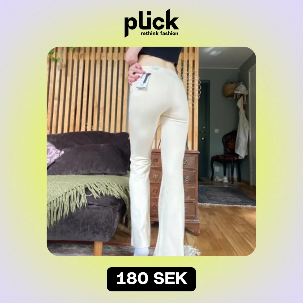 Somriga, utsvängda beige byxor från Calzedonia i stretchigt material. Använda en gång. Storlek S (jag är 173 cm). Nypris 359 kr, säljes för 170 kr. Basplagg 🌼🎀