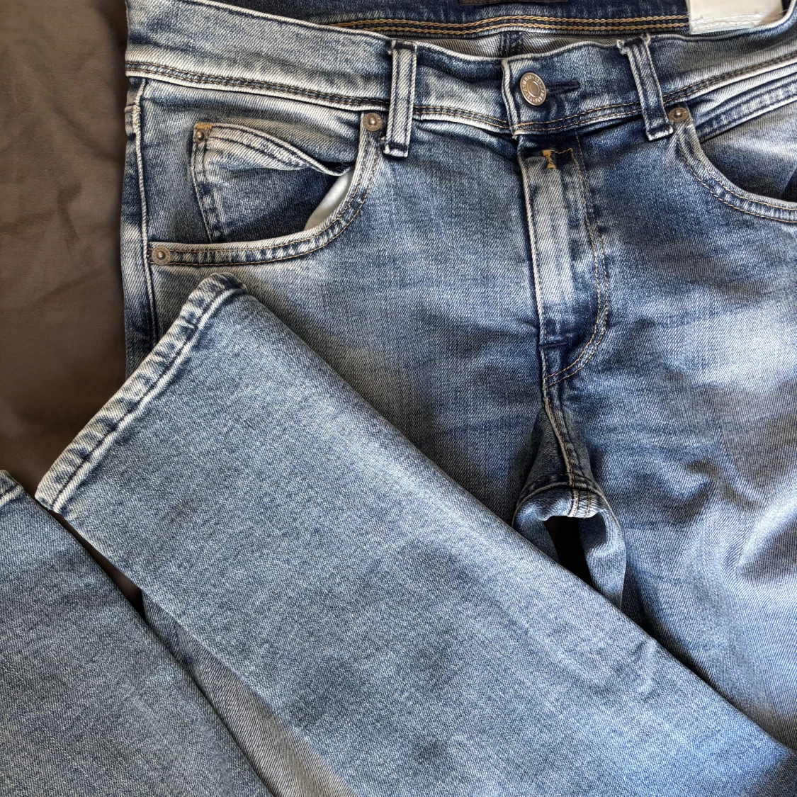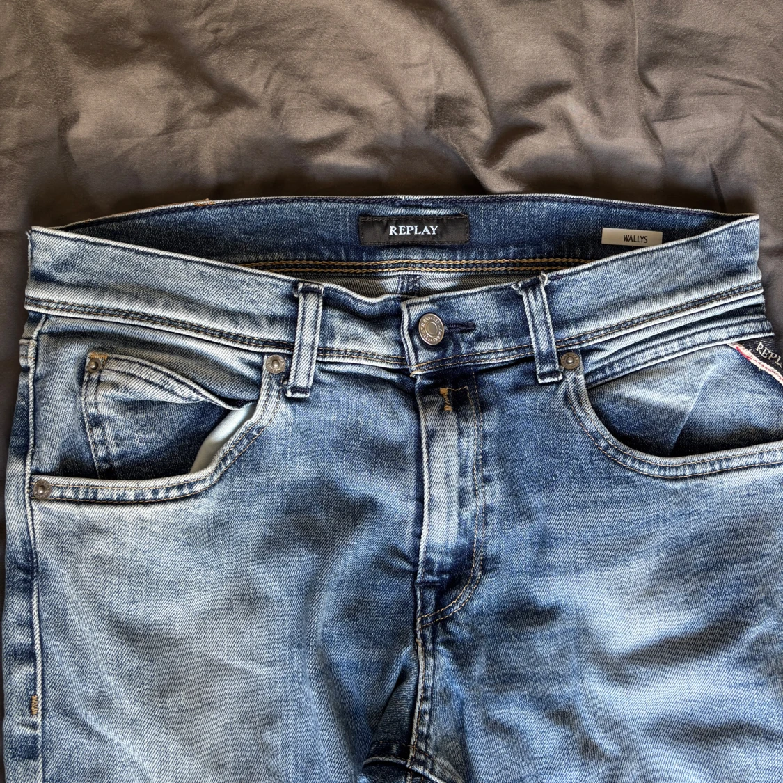 Snygga blå jeans från Replay med klassisk femficksdesign och knappgylf. Perfekta för en avslappnad stil. De har en lätt tvättad look som ger en cool och trendig känsla. Modellen heter Wallys