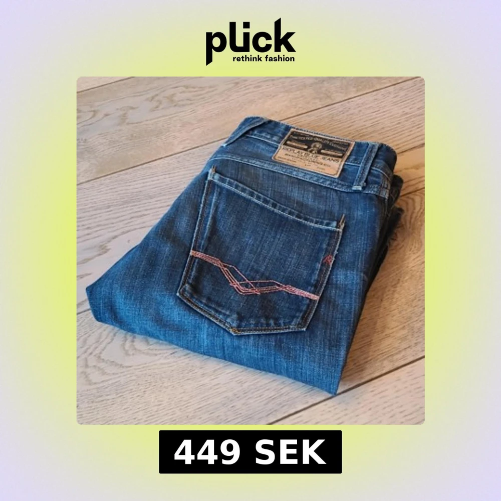 Snygga Replay Anbass jeans i klassisk blå tvätt med raka ben och lite mer slim passform. Jeansen har fem fickor, coola röd/rosa sömmar på bakfickorna och detaljerad Replay Blue Jeans-label i midjan. Perfekt för dig som gillar stilrena och tidlösa jeans. Jeansen är i nyskick då de knappt användts. De är L32 W32, det är bara att skicka om frågor